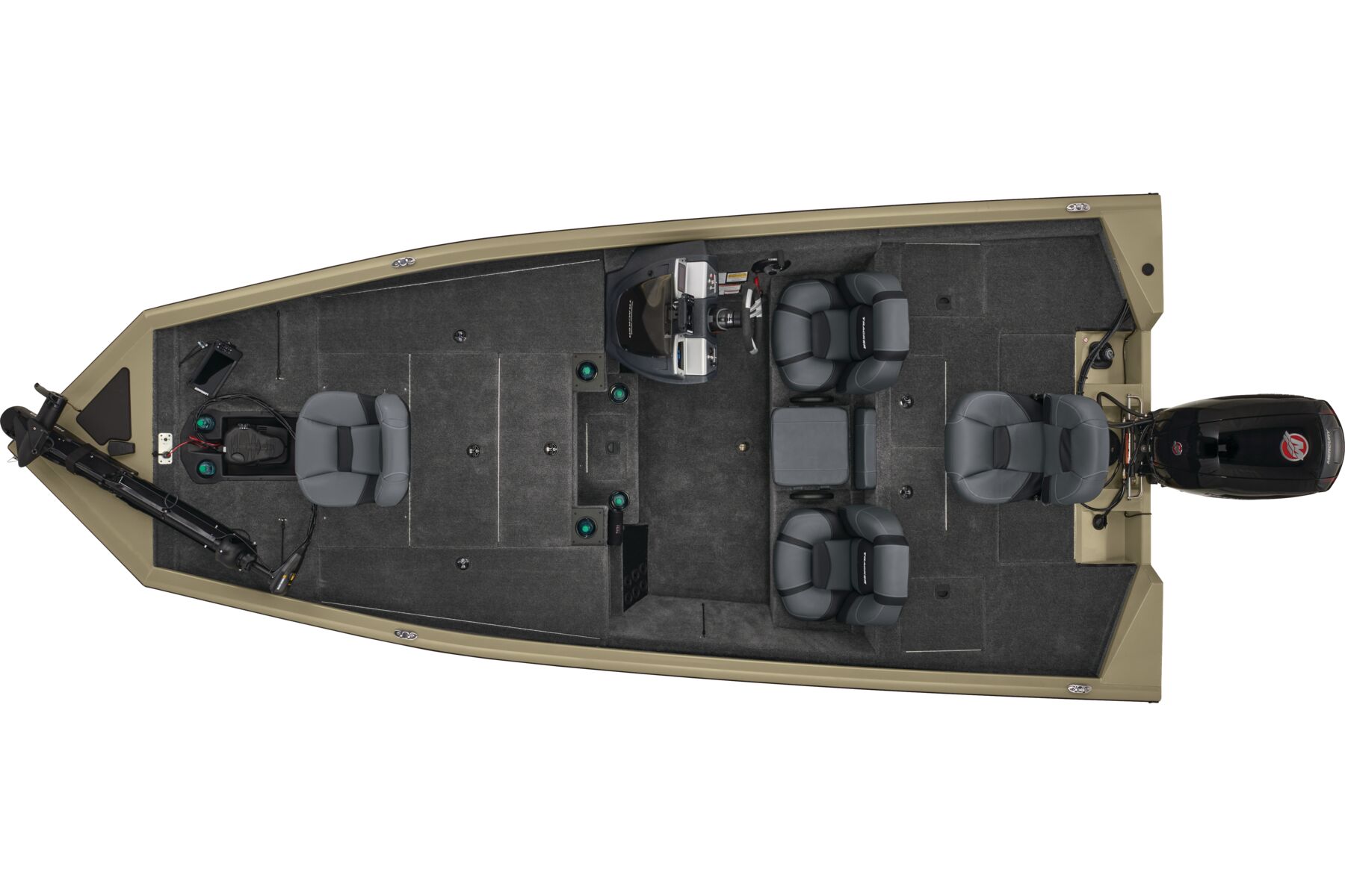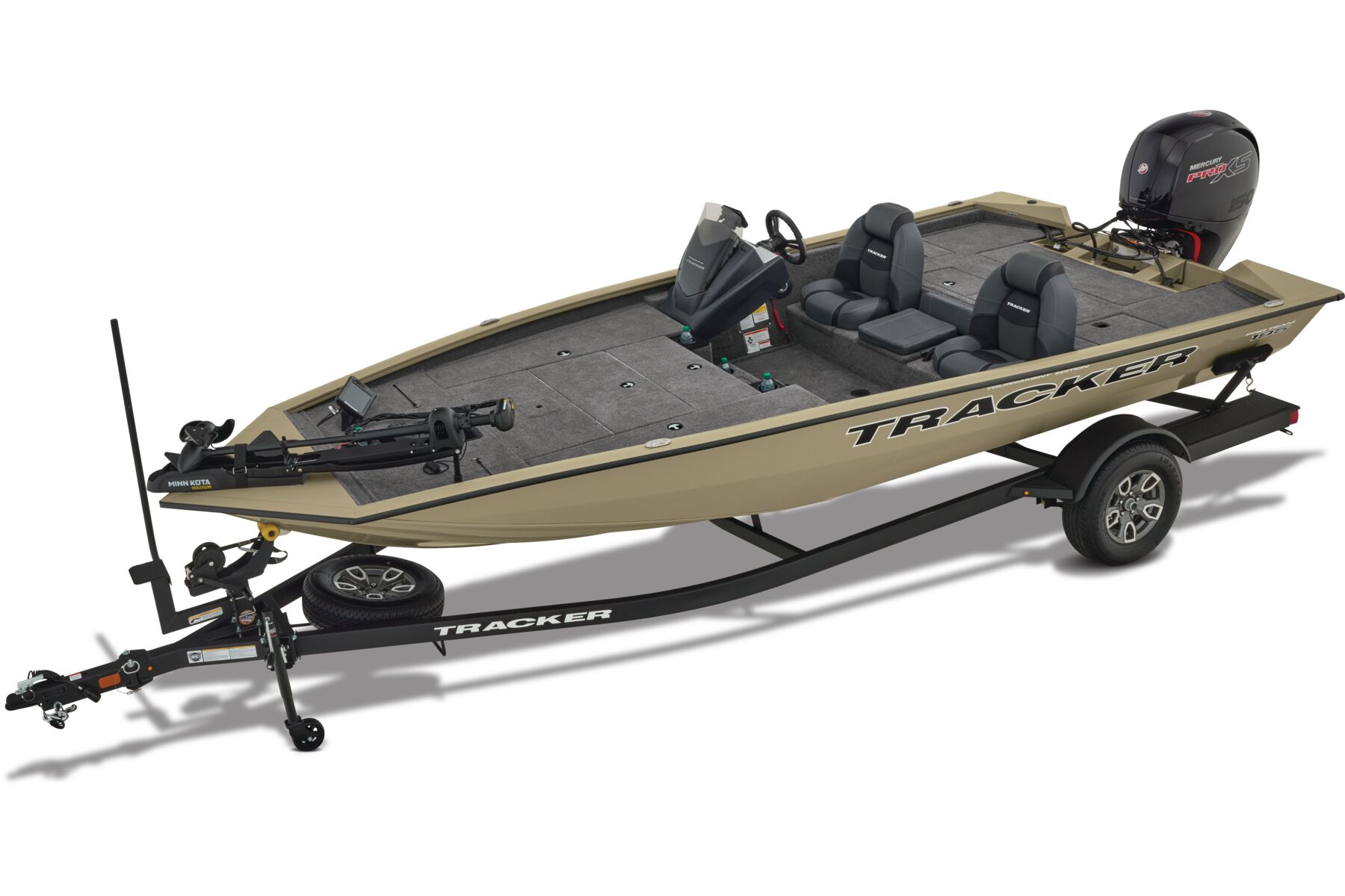 The TRACKER® PRO TEAM™ 195 is the flagship bass boat of the PRO TEAM lineup, designed to elevate your fishing experience. This large, fast, all-welded boat is equipped with carefully selected features to help you excel on the water. Its proven layout includes dual Lowrance® fishfinders, an upgraded Minn Kota® trolling motor with two batteries, spacious center tackle storage, and dual 8’ bow rod boxes—giving you everything you need for a successful day of fishing. Additionally, the boat now features a state-of-the-art Tracker touchscreen gauge display, providing a new level of convenience and control by allowing easy access to crucial information and features. Powered by a smooth and reliable 150 hp Mercury FourStroke outboard engine, this boat delivers top-notch performance. With the TRACKER PROMISE, which offers the best factory warranty in aluminum boats, you can fish with confidence knowing you’re supported by the industry’s best. The TRACKER® PRO TEAM™ 195 is truly the ultimate fishing machine for anglers who demand the best.