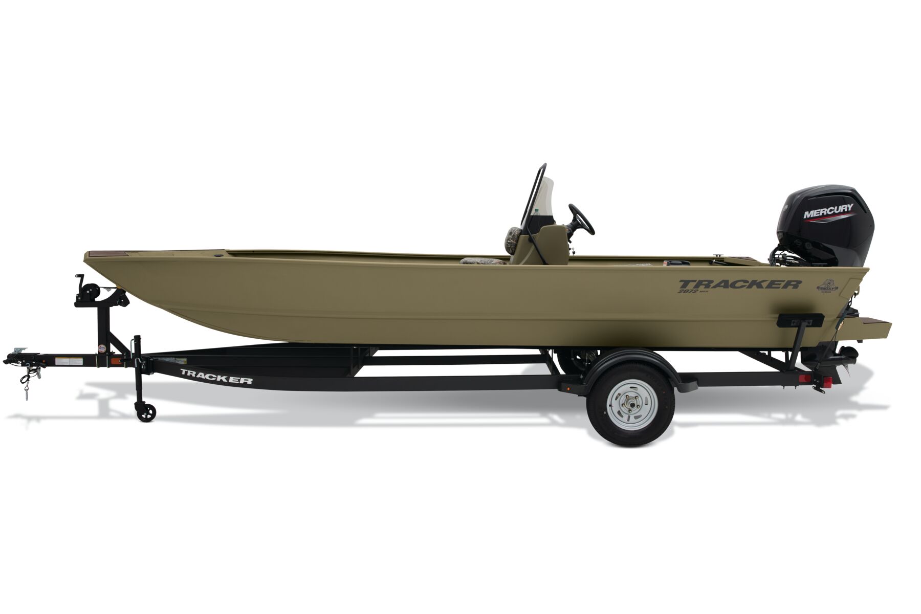 Unleash the power of the TRACKER® GRIZZLY® 2072 CC, a formidable all-welded aluminum jon boat designed to tackle a multitude of tasks, whether it's inland or inshore fishing, hunting, or utility work. Boasting a massive build, this boat is ready to conquer any challenge you throw its way. The innovative center-console design not only offers 360° fishability but also provides the driver with enhanced visibility when navigating through narrow and shallow waters, ensuring a smooth and controlled ride. With the capability to be powered by up to 150 HP, the GRIZZLY 2072 CC delivers unmatched power and range for your adventures on the water. Constructed with 100% aluminum, featuring a .100 hull and .190 floor, this boat guarantees exceptional durability and longevity. The hull, stringer, transom, and decks are meticulously all-welded to create a rock-solid, unitized structure that can withstand the harshest conditions with ease. Backed by the reliable TRACKER PROMISE, offering the best factory warranty in aluminum boats, the GRIZZLY 2072 CC provides you with peace of mind and confidence in your investment. For those looking to personalize their vessel, optional TrueTimber camo patterns and a MarineMat kit are available, allowing you to tailor your boat to suit your preferences and style. Experience unparalleled versatility, power, and durability with the TRACKER GRIZZLY 2072 CC, your ultimate companion for a wide range of water activities.