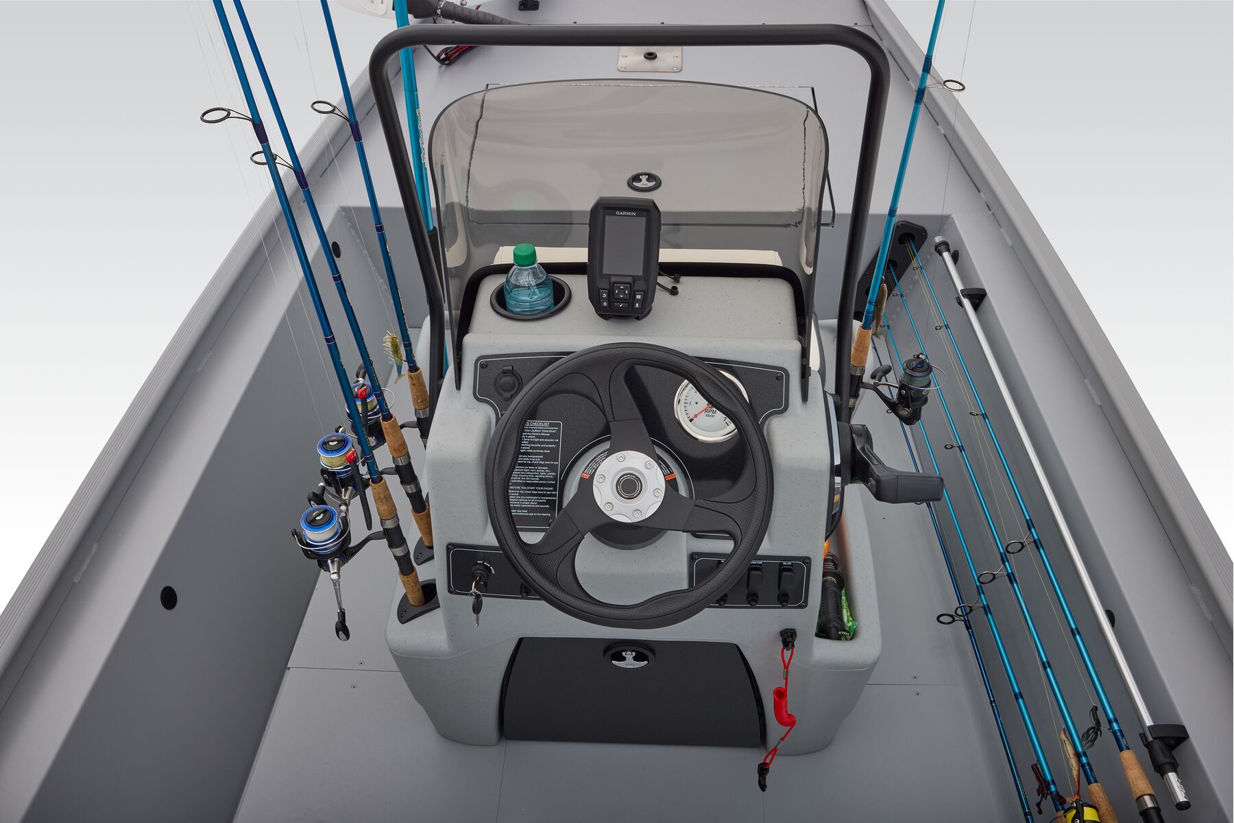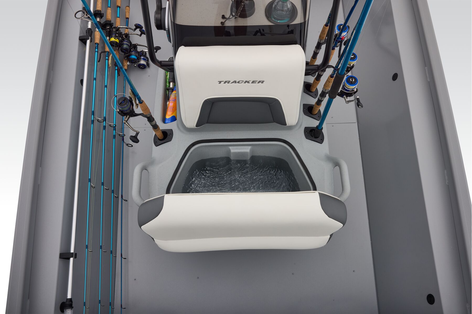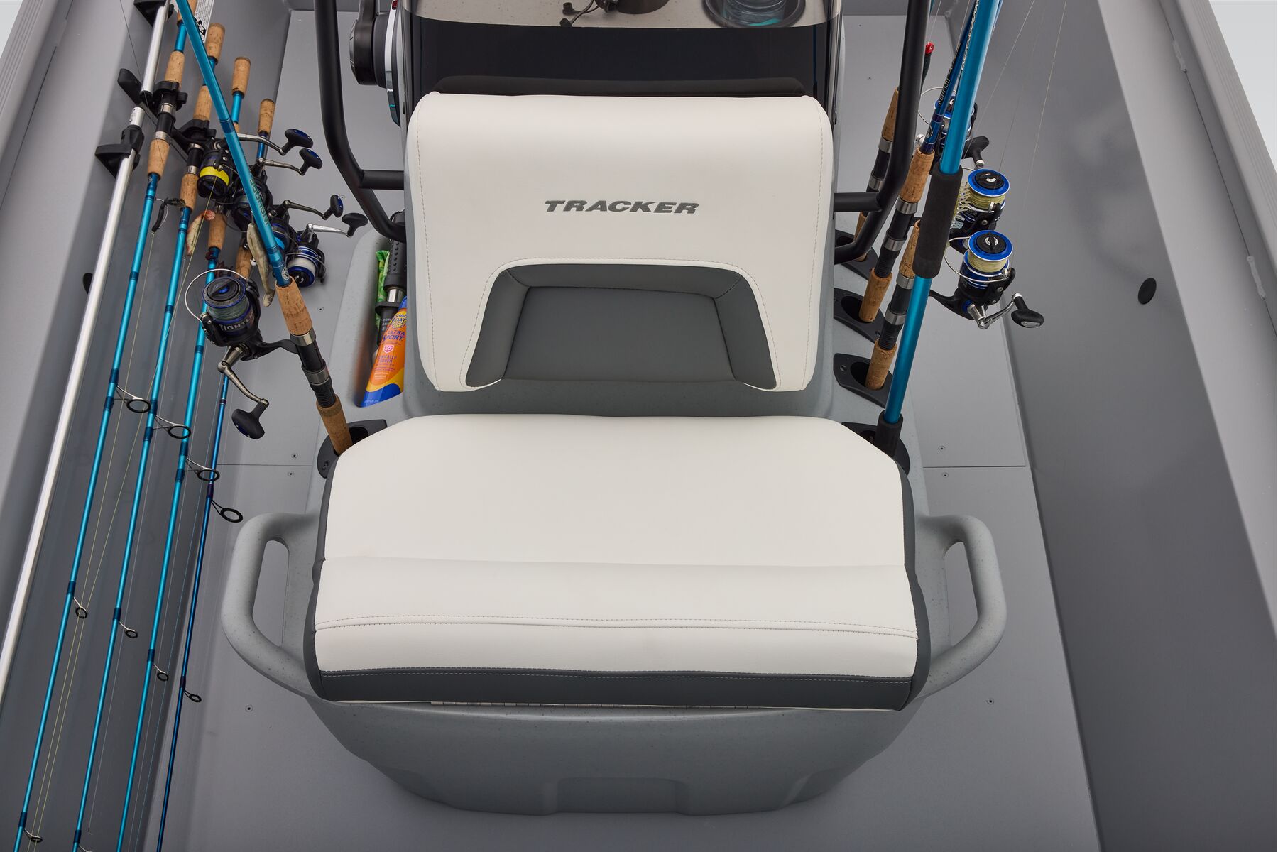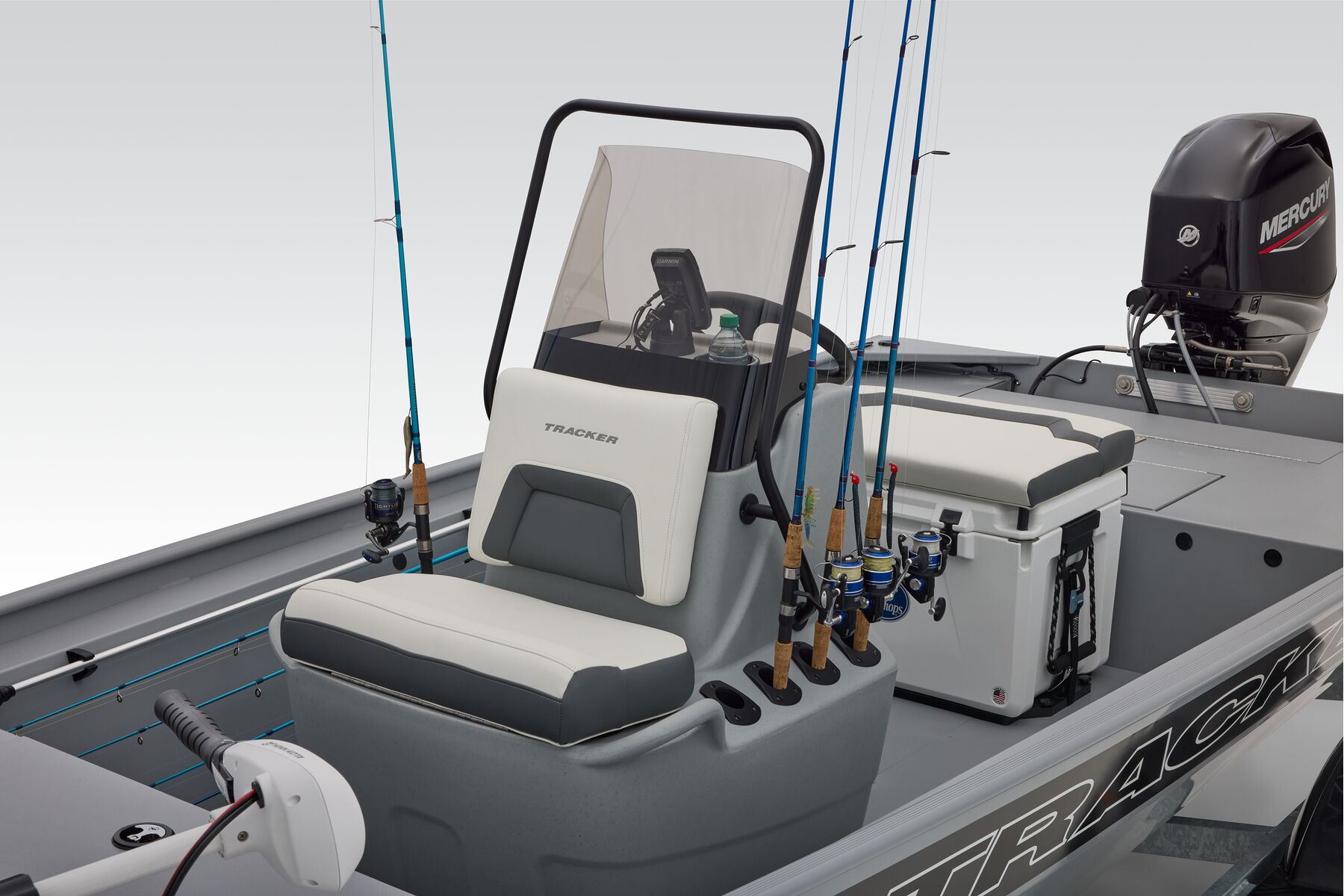 The TRACKER® Classic CC is the newest edition to the historical Classic lineup. Featuring 15-gal aerated livewell ensuring your catch stays fresh. Its molded one-piece construction with rounded corners allows for easy cleanup and added protection for your catch. The Minn Kota® Riptide® Maxxum® 12V trolling motor delivers 55 lbs. of thrust with a 52" shaft, providing reliable control on the water. The one-piece rotomolded console includes a tinted windscreen, drink holder, and 12V outlet, while the forward console seat offers padded comfort and storage. Five rod holders and a Garmin® STRIKER™ 4 fishfinder with GPS and CHIRP transducer enhance your fishing experience. Inside, there are two pedestal seat bases, elevated bow and aft casting decks with storage, a 94-qt. bow storage tub, and a padded 50-qt. cooler. Built with durable DIAMOND COAT™ powdercoat and all-welded aluminum construction, this boat offers unmatched strength and longevity. A custom-fit single-axle trailer completes this rugged, high-performance package.