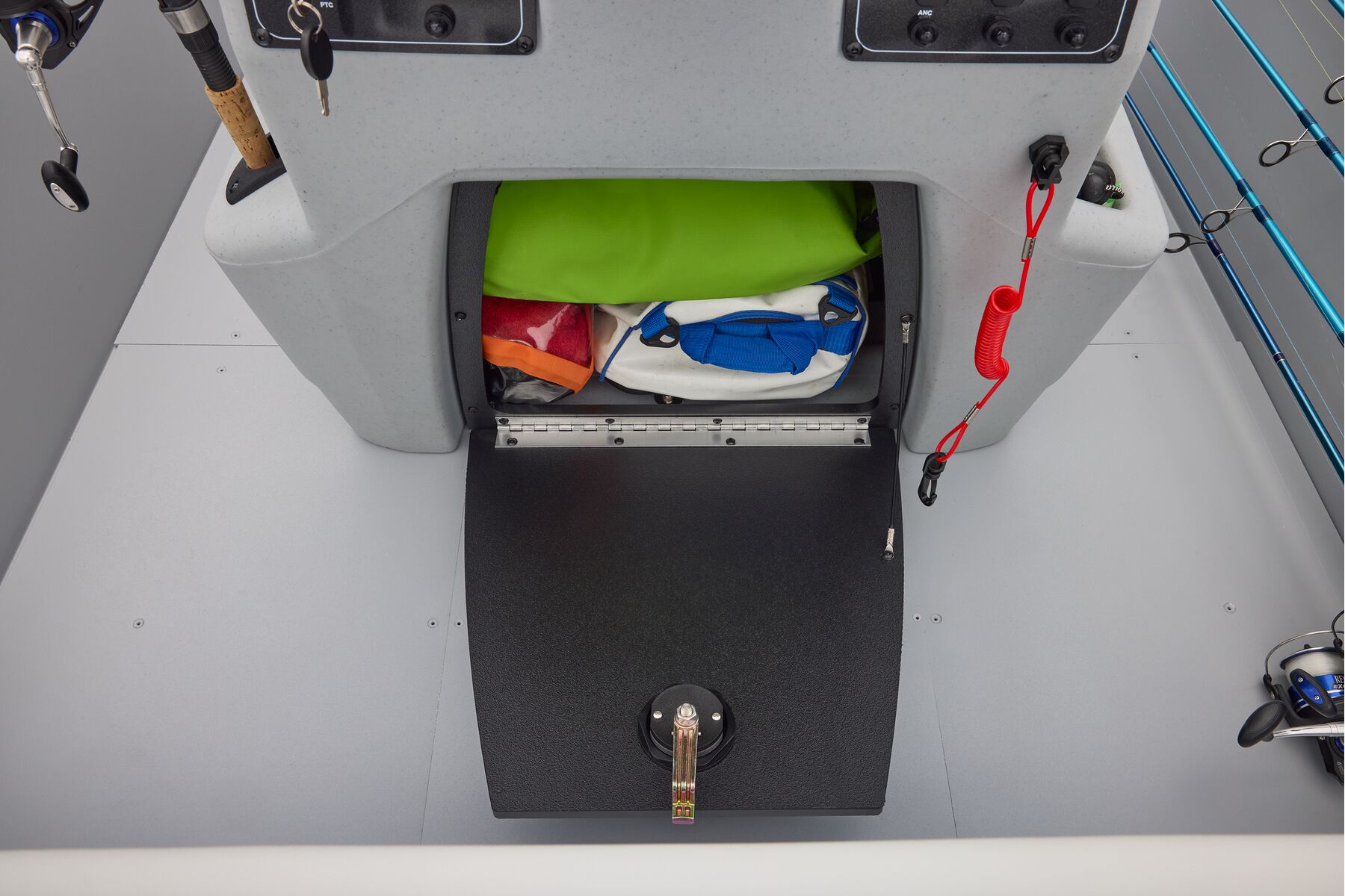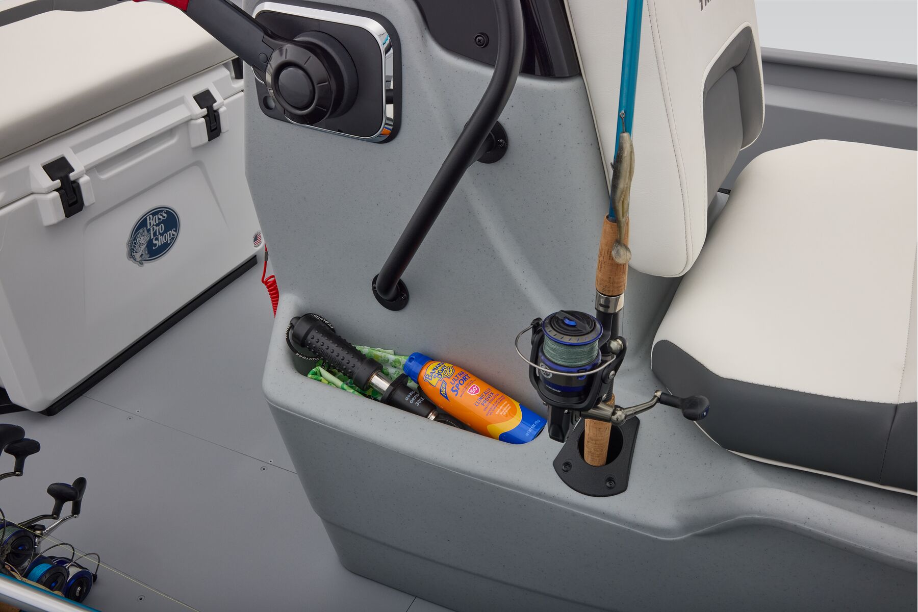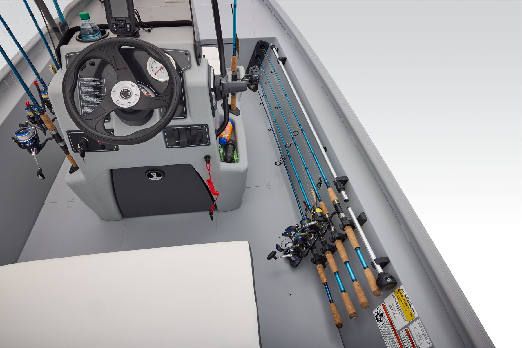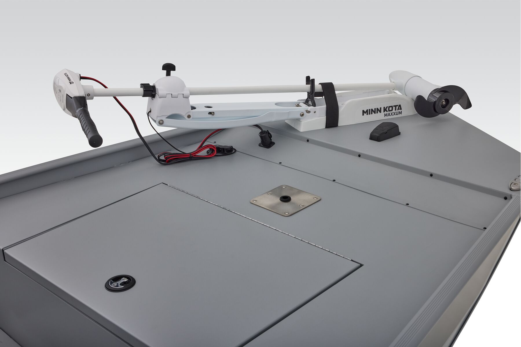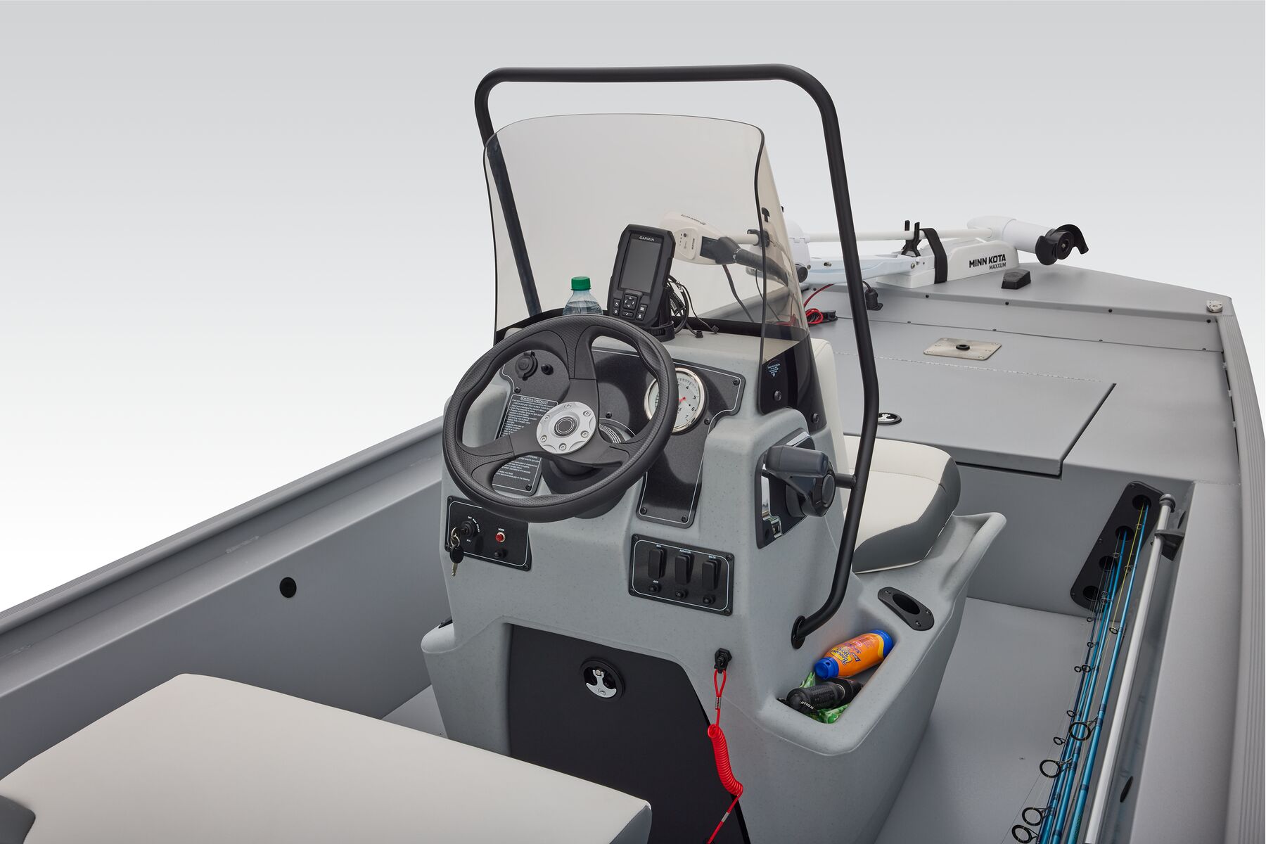 The TRACKER® Classic CC is the newest edition to the historical Classic lineup. Featuring 15-gal aerated livewell ensuring your catch stays fresh. Its molded one-piece construction with rounded corners allows for easy cleanup and added protection for your catch. The Minn Kota® Riptide® Maxxum® 12V trolling motor delivers 55 lbs. of thrust with a 52" shaft, providing reliable control on the water. The one-piece rotomolded console includes a tinted windscreen, drink holder, and 12V outlet, while the forward console seat offers padded comfort and storage. Five rod holders and a Garmin® STRIKER™ 4 fishfinder with GPS and CHIRP transducer enhance your fishing experience. Inside, there are two pedestal seat bases, elevated bow and aft casting decks with storage, a 94-qt. bow storage tub, and a padded 50-qt. cooler. Built with durable DIAMOND COAT™ powdercoat and all-welded aluminum construction, this boat offers unmatched strength and longevity. A custom-fit single-axle trailer completes this rugged, high-performance package.