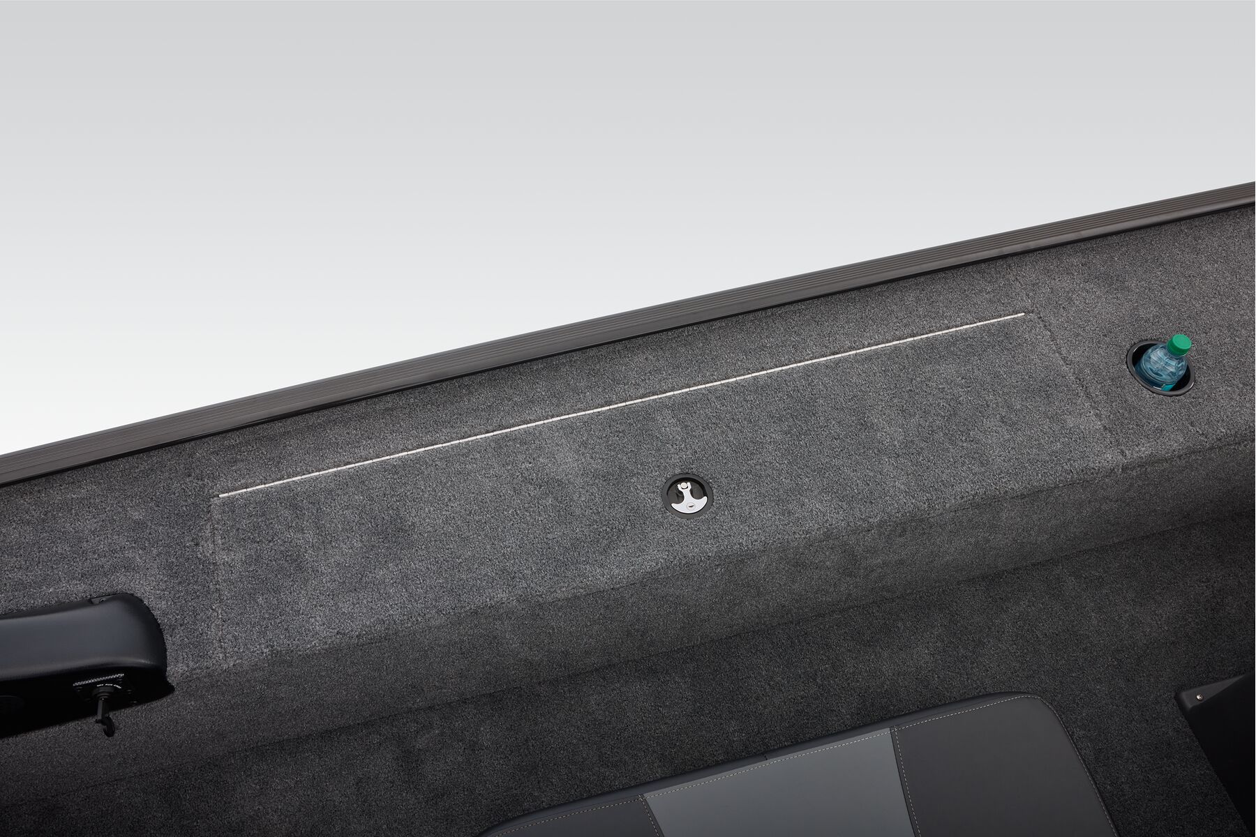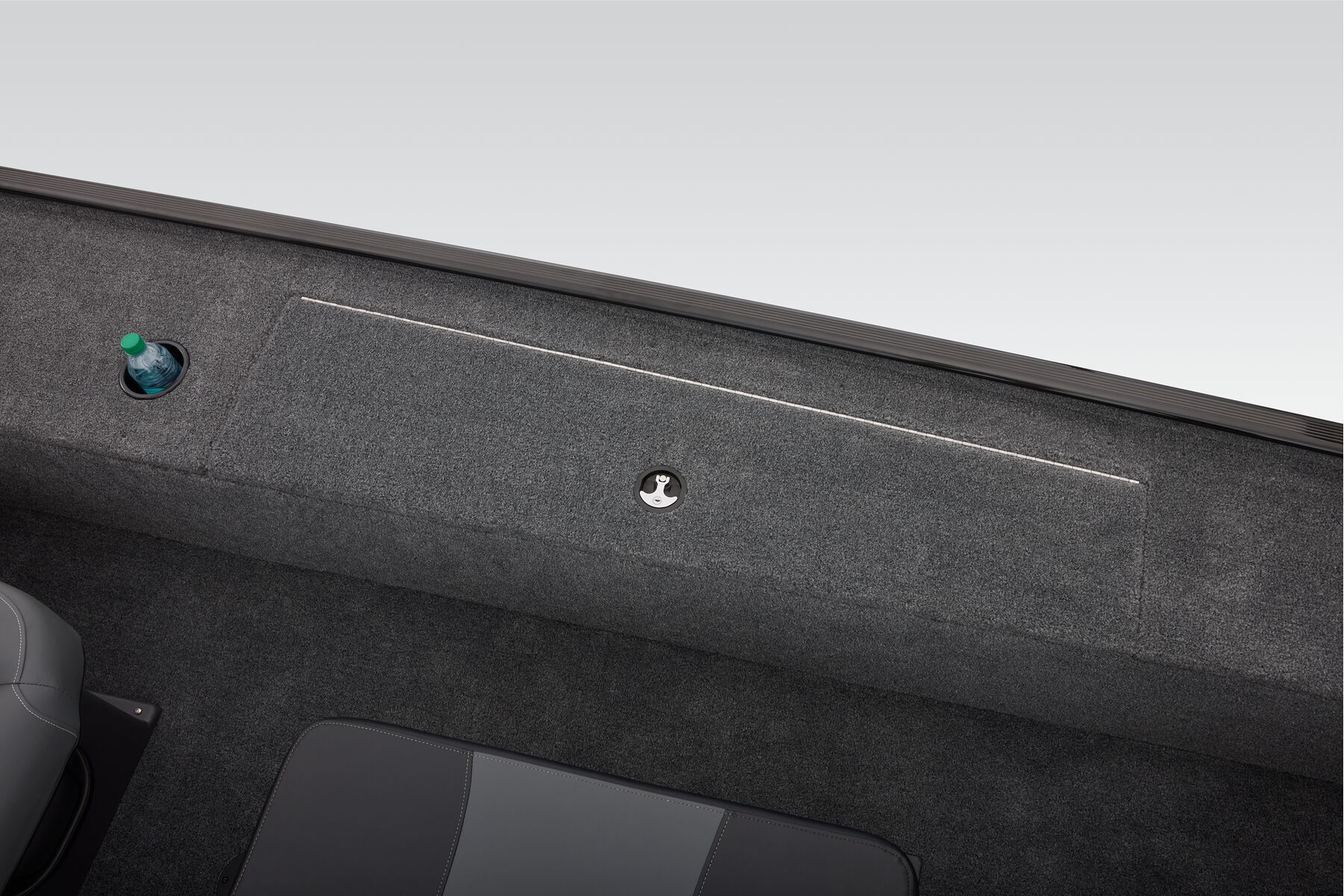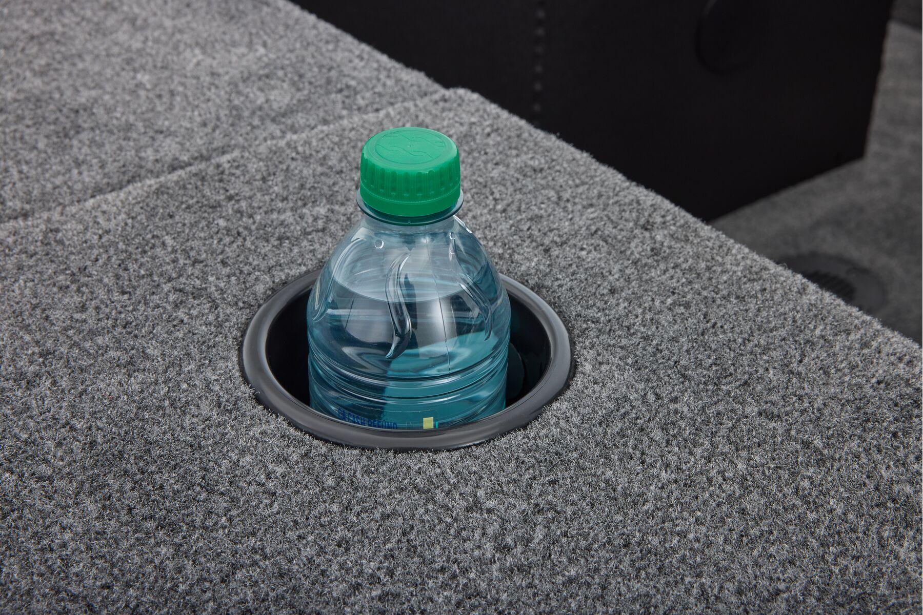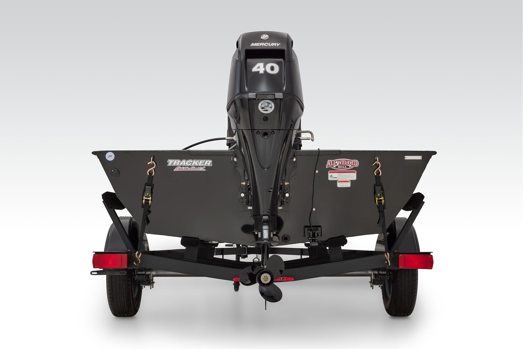 The cockpit’s well-designed layout provides ample space for you and a friend or two to carry all your essentials for a successful day on the water. A center livewell, topped with a cushioned seat for two, offers convenient fish storage, while the rear fold-down fishing seat conceals additional storage options. Powering this reliable vessel is a smooth Mercury® engine, engineered for efficient and economical performance.