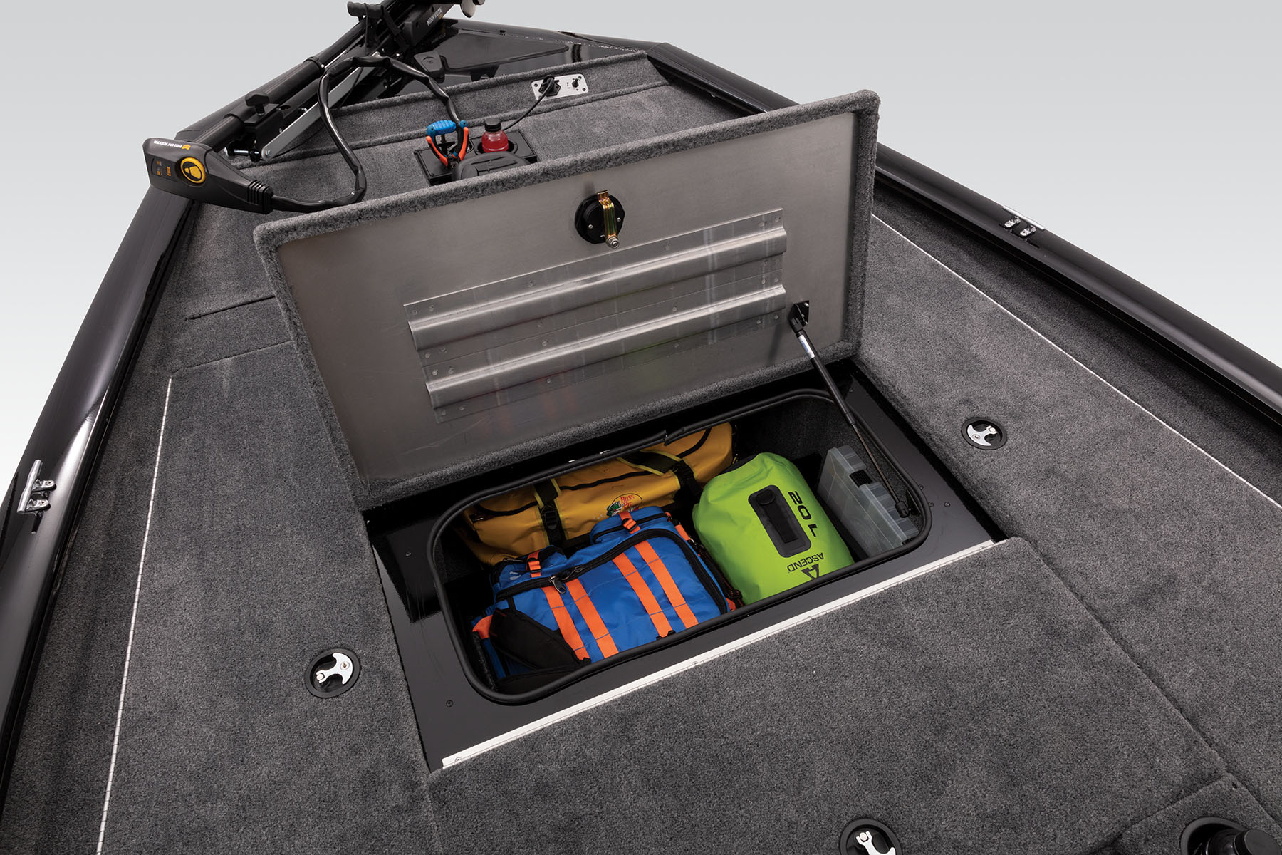 The TRACKER® PRO TEAM™ 195 TXW is designed to provide you top-level performance and optimized fishability via a massive fishing platform. The bow deck layout was designed for tournament anglers by tournament anglers with dual 8’ rod boxes and an incredibly spacious center tackle organizer. In addition, it features a timed, divided and aerated 27-gallon livewell, and comes factory-rigged with a Minn Kota® trolling motor, Lowrance® fishfinder and more!