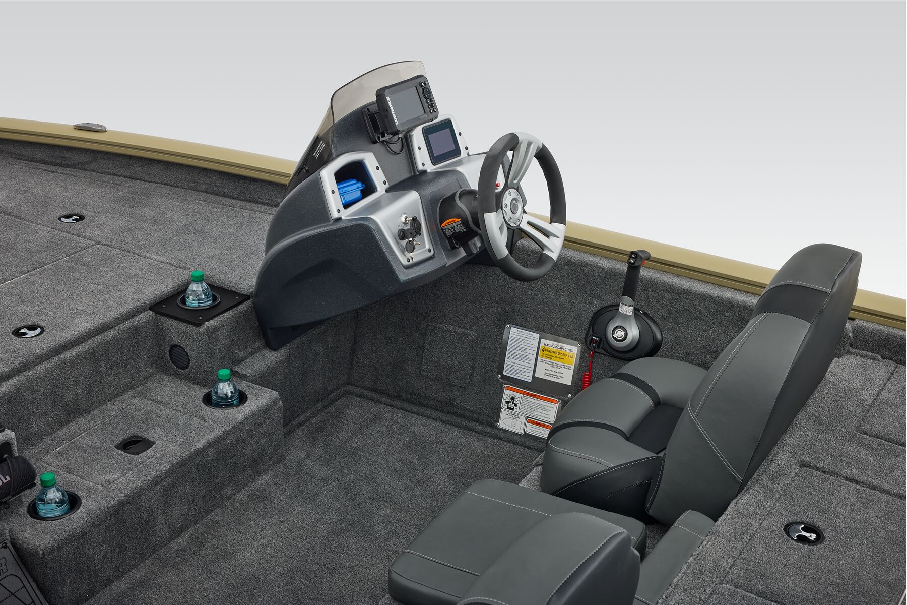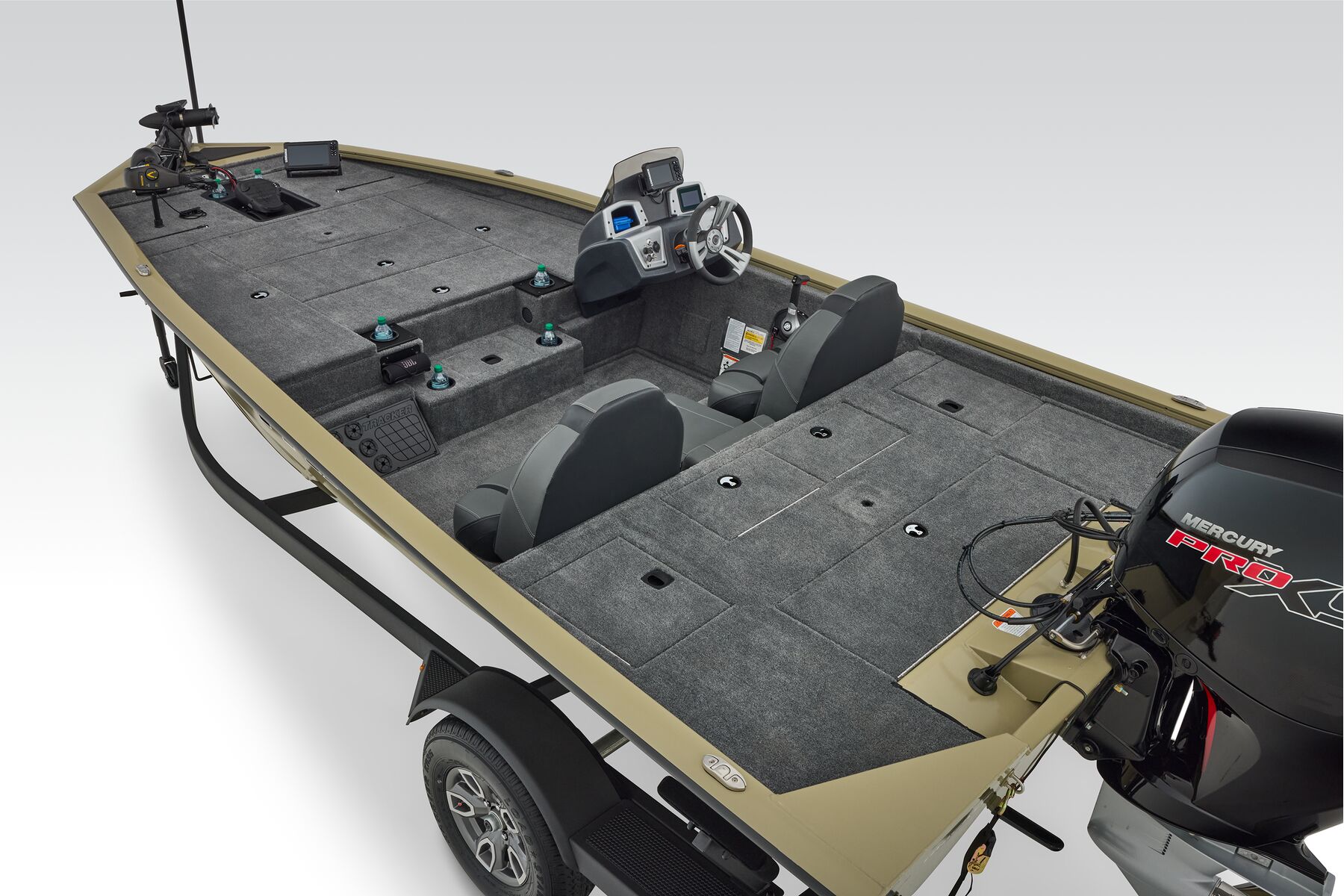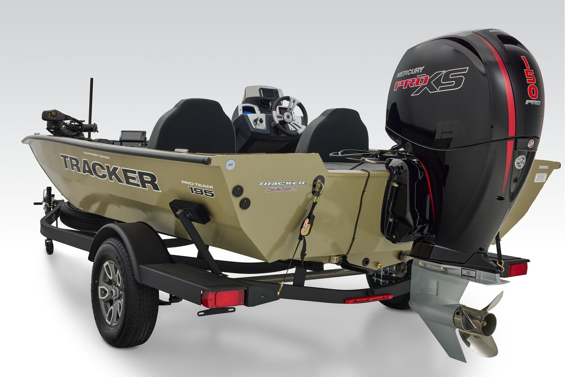 The TRACKER® PRO TEAM™ 195 is the flagship bass boat of the PRO TEAM lineup, designed to elevate your fishing experience. This large, fast, all-welded boat is equipped with carefully selected features to help you excel on the water. Its proven layout includes dual Lowrance® fishfinders, an upgraded Minn Kota® trolling motor with two batteries, spacious center tackle storage, and dual 8’ bow rod boxes—giving you everything you need for a successful day of fishing. Additionally, the boat now features a state-of-the-art Tracker touchscreen gauge display, providing a new level of convenience and control by allowing easy access to crucial information and features. Powered by a smooth and reliable 150 hp Mercury FourStroke outboard engine, this boat delivers top-notch performance. With the TRACKER PROMISE, which offers the best factory warranty in aluminum boats, you can fish with confidence knowing you’re supported by the industry’s best. The TRACKER® PRO TEAM™ 195 is truly the ultimate fishing machine for anglers who demand the best.