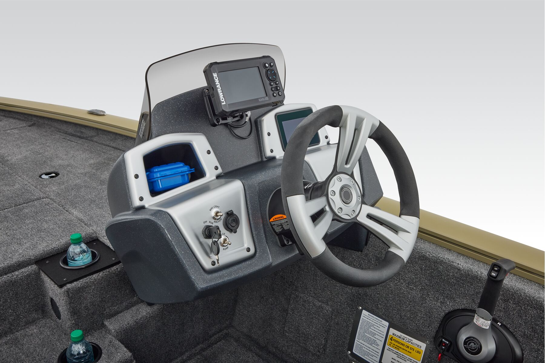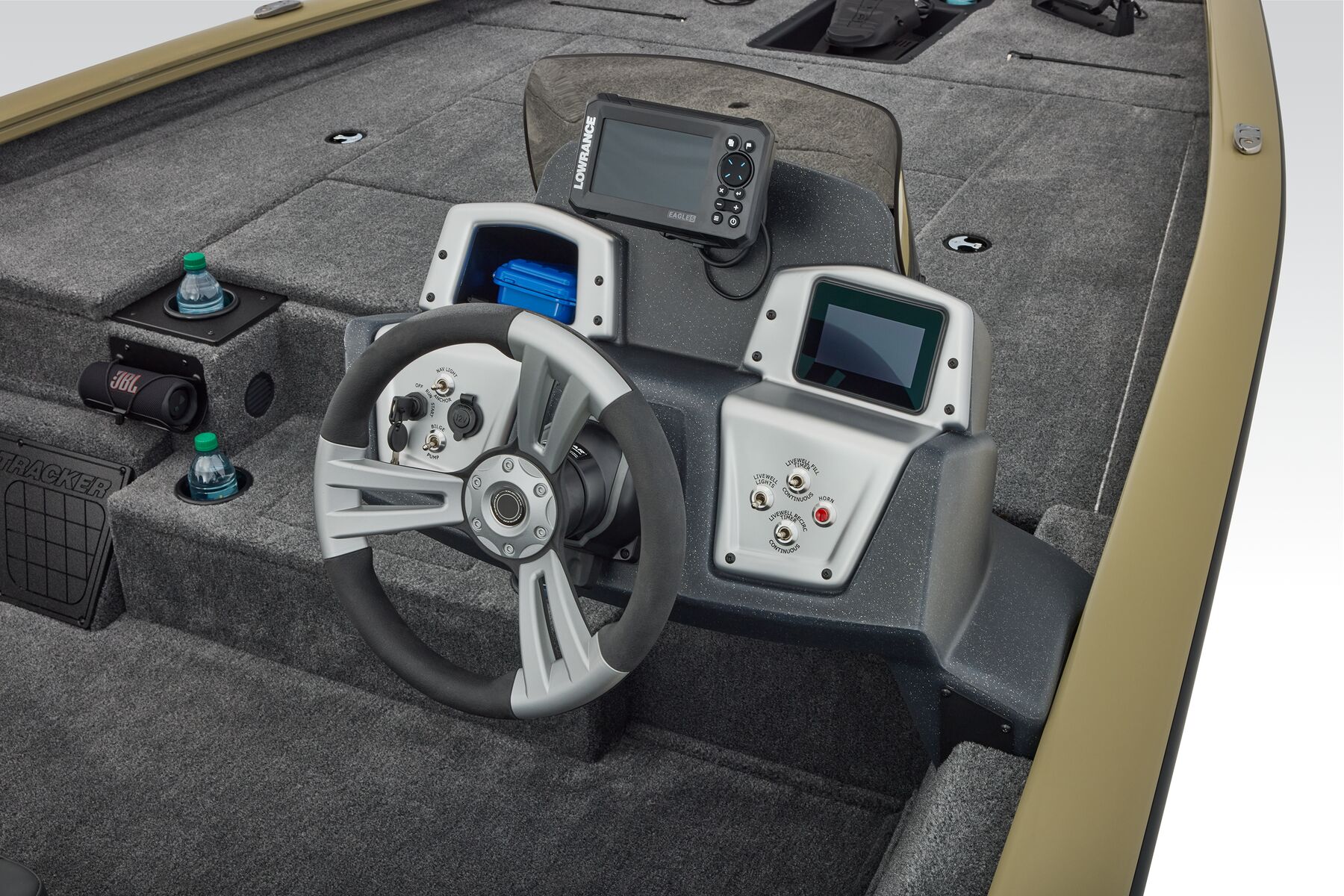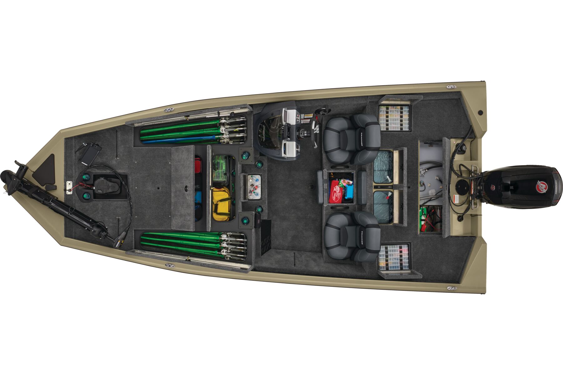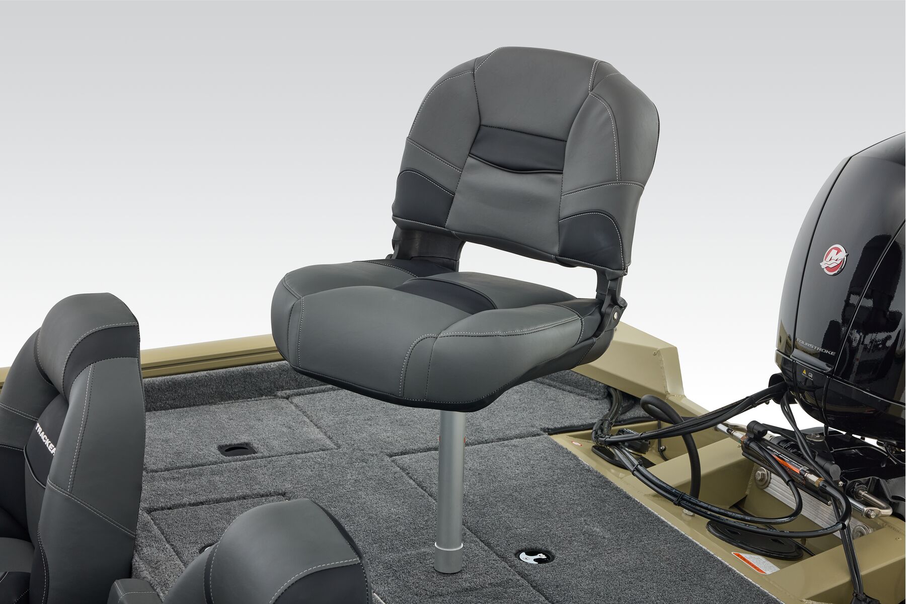 The TRACKER® PRO TEAM™ 195 is the flagship bass boat of the PRO TEAM lineup, designed to elevate your fishing experience. This large, fast, all-welded boat is equipped with carefully selected features to help you excel on the water. Its proven layout includes dual Lowrance® fishfinders, an upgraded Minn Kota® trolling motor with two batteries, spacious center tackle storage, and dual 8’ bow rod boxes—giving you everything you need for a successful day of fishing. Additionally, the boat now features a state-of-the-art Tracker touchscreen gauge display, providing a new level of convenience and control by allowing easy access to crucial information and features. Powered by a smooth and reliable 150 hp Mercury FourStroke outboard engine, this boat delivers top-notch performance. With the TRACKER PROMISE, which offers the best factory warranty in aluminum boats, you can fish with confidence knowing you’re supported by the industry’s best. The TRACKER® PRO TEAM™ 195 is truly the ultimate fishing machine for anglers who demand the best.