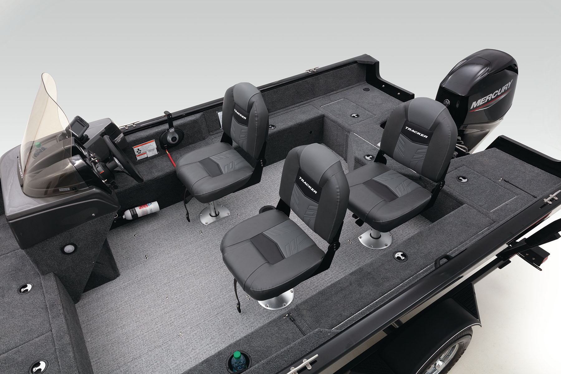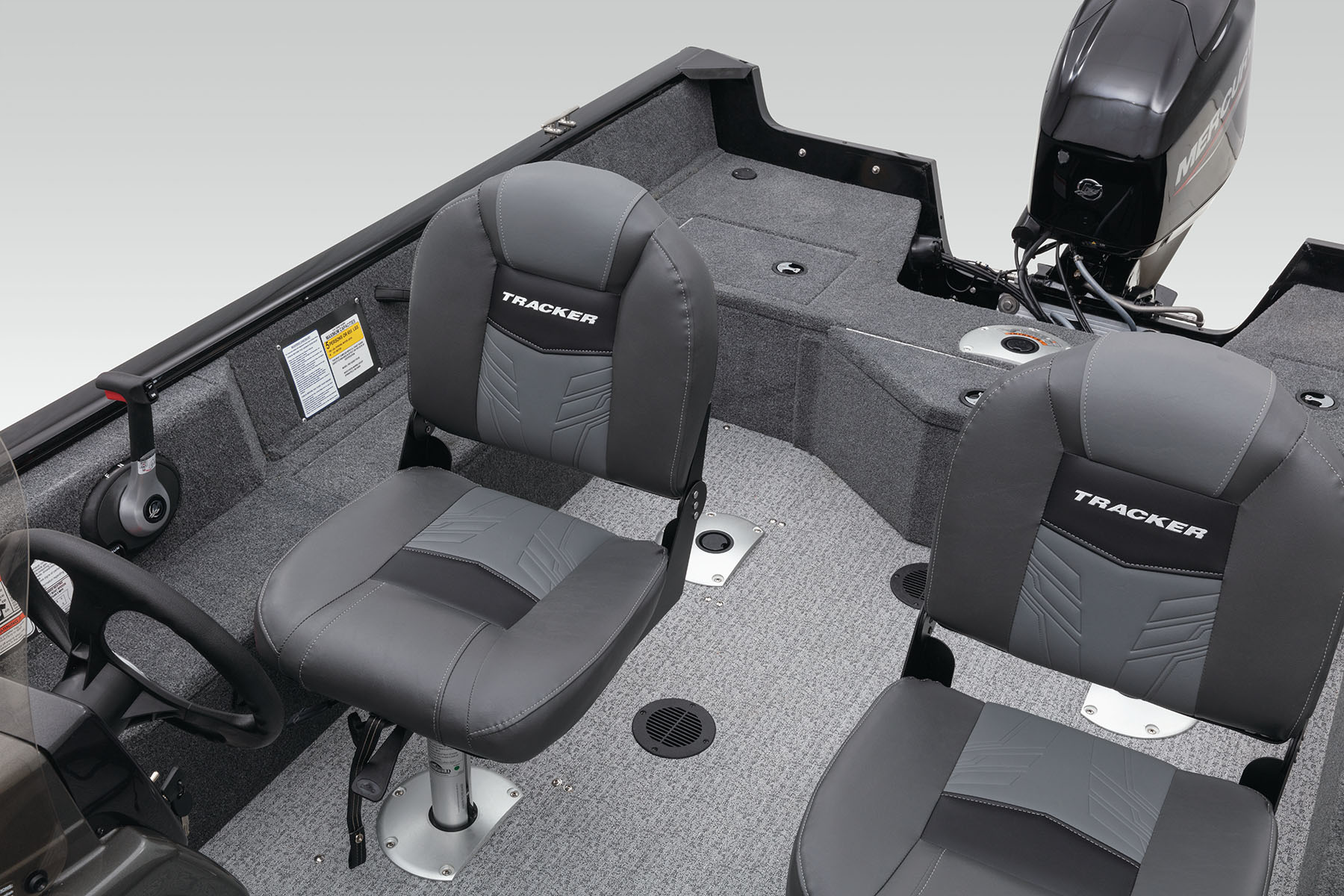 Backed by the TRACKER PROMISE—the best factory warranty in aluminum boats—the PRO GUIDE V-16 SC is a versatile and comfortable boat for species from walleye to bass, pike to catfish. The easy-clean vinyl floor, three movable fishing chairs and big storage make it one of the friendliest boats in the lineup.