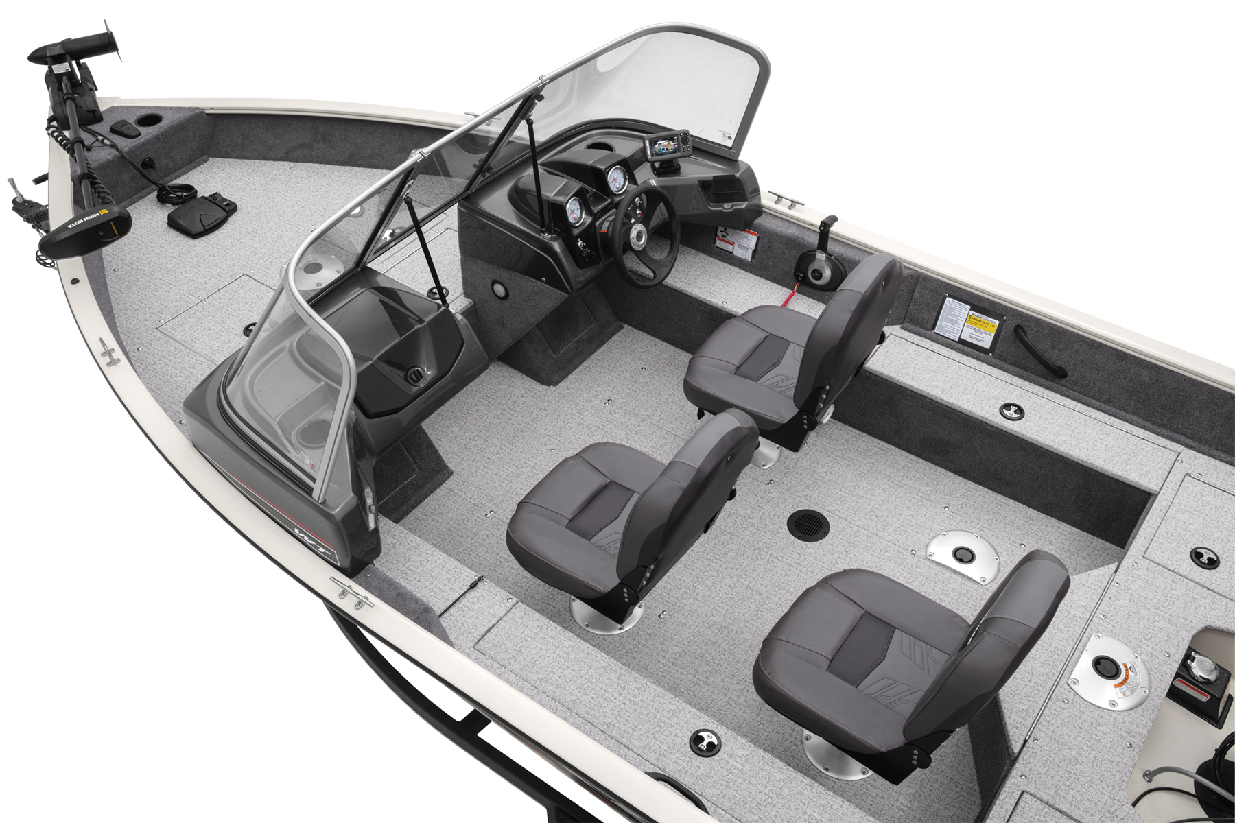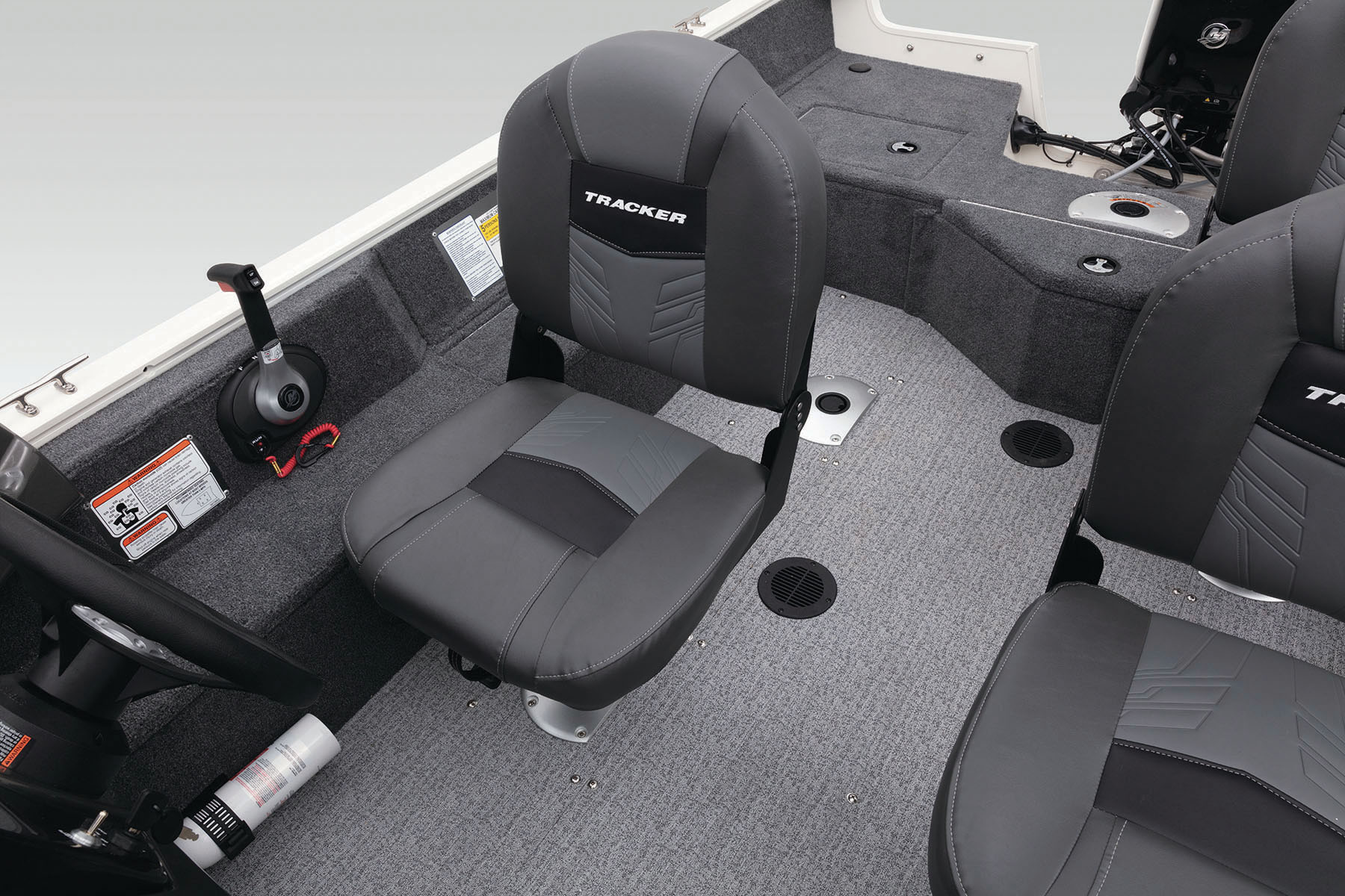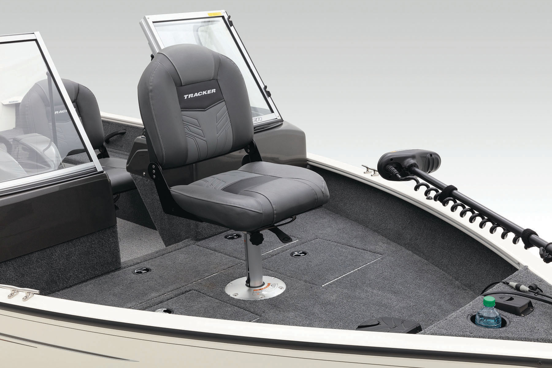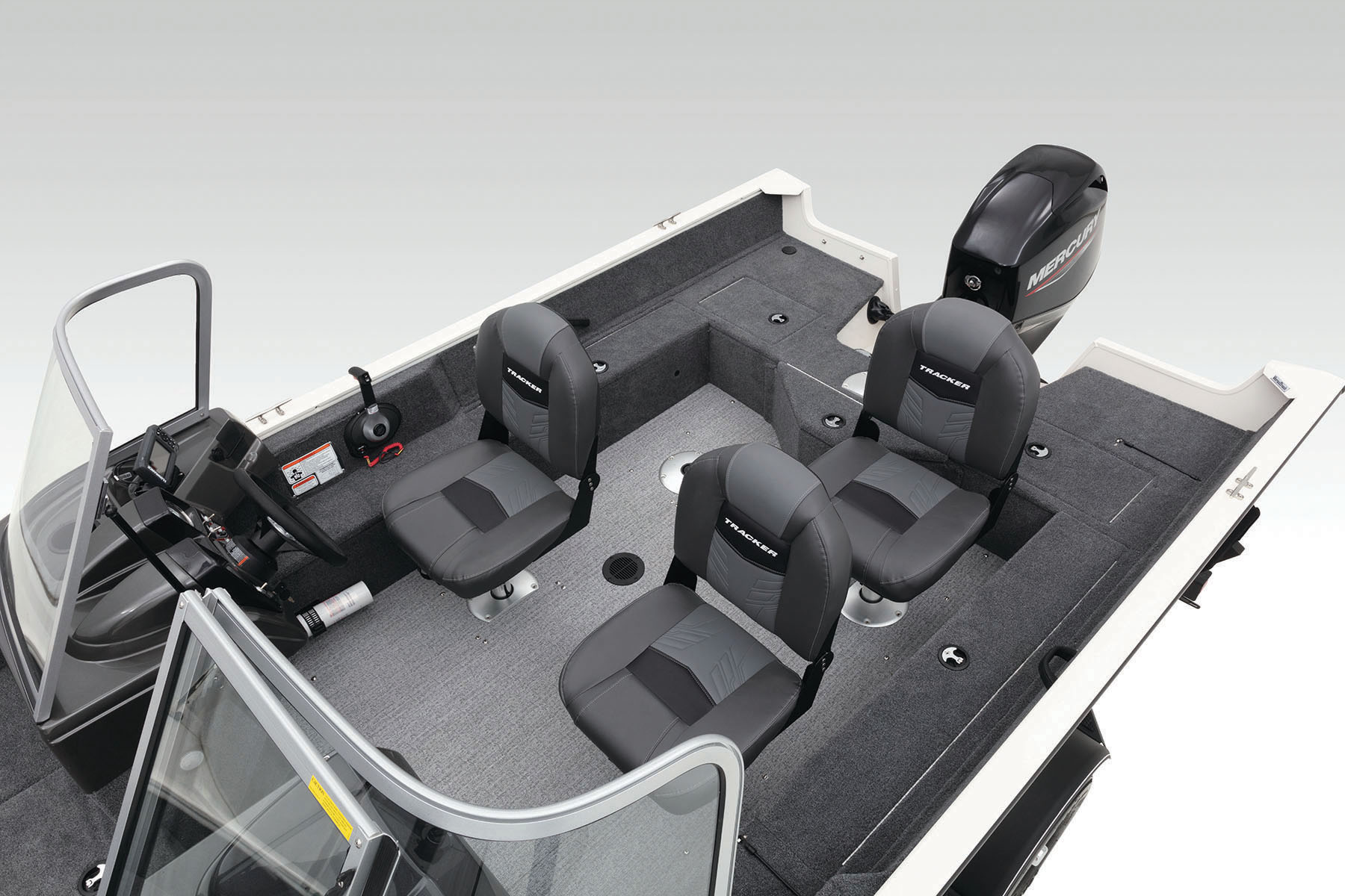 The TRACKER® PRO GUIDE™ V-16 WT (walk-thru) is a compact and highly-capable Deep V with a protective, wrap-around, walk-thru windshield to protect you and your crew from the elements in adverse conditions. With three movable fishing seats and six seat locations, it’s configurable for many fishing or cruising situations. And massive amounts of storage boat-wide let you haul all the gear you need.