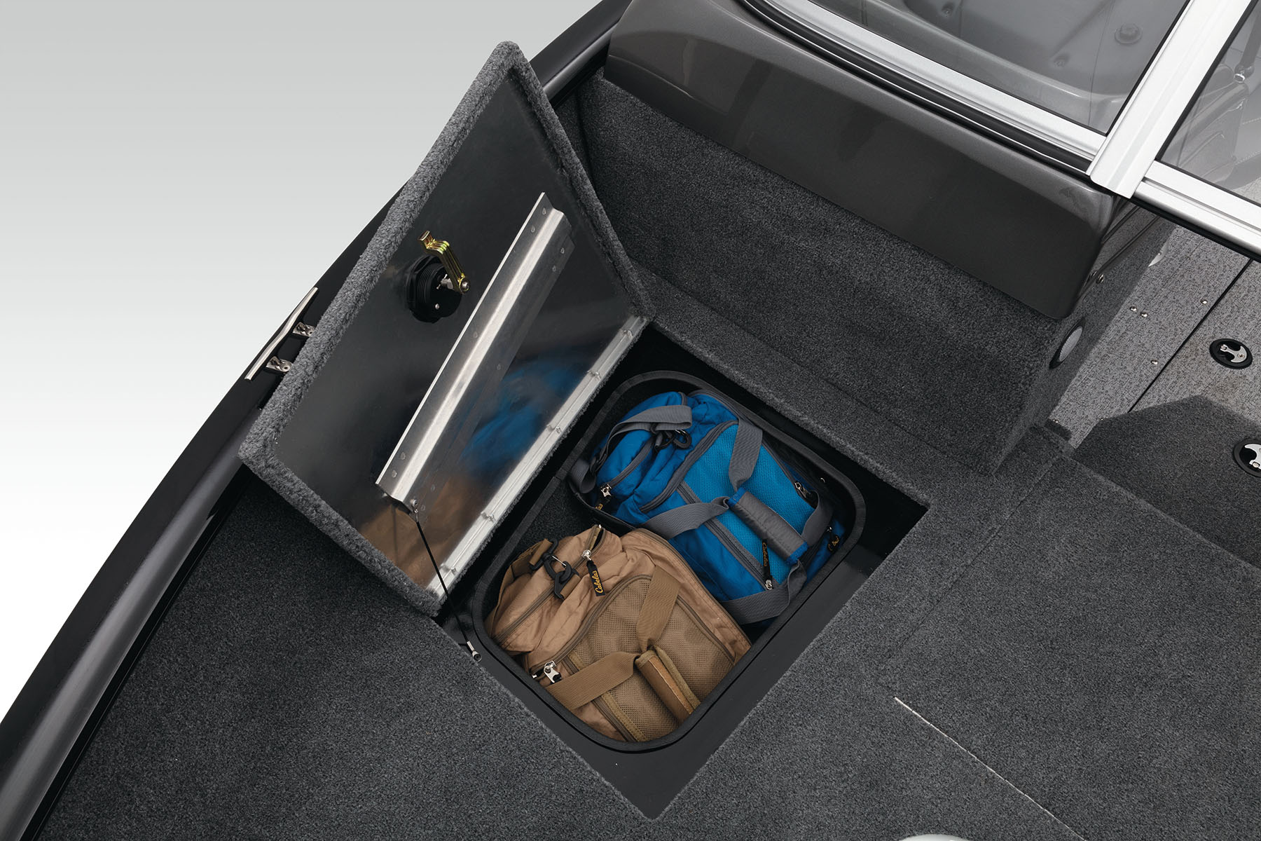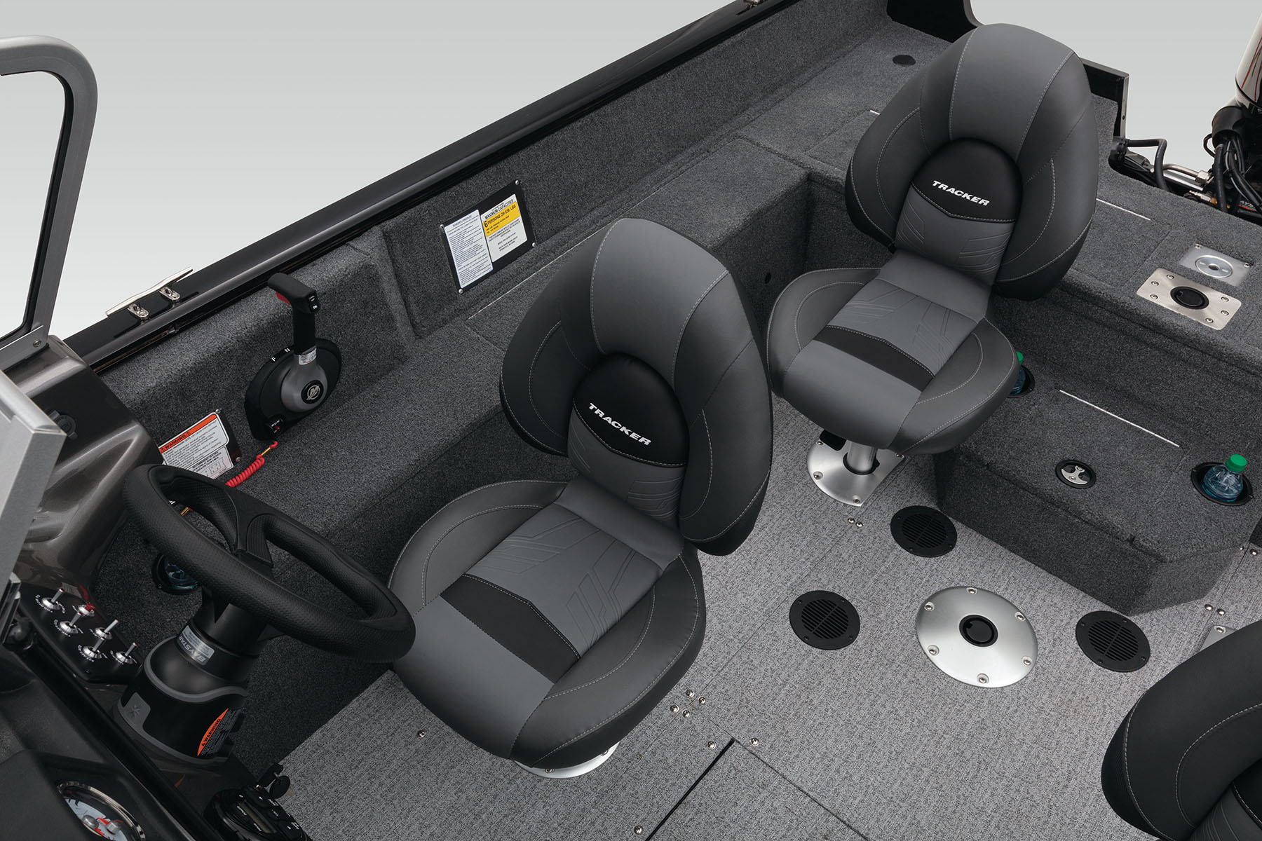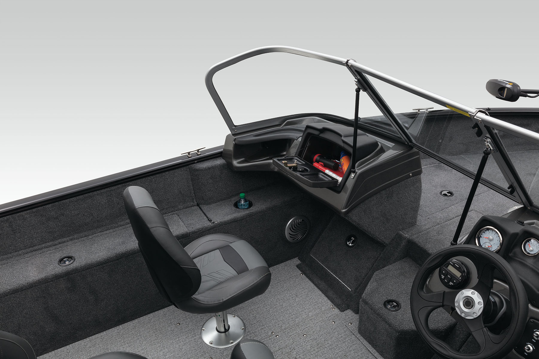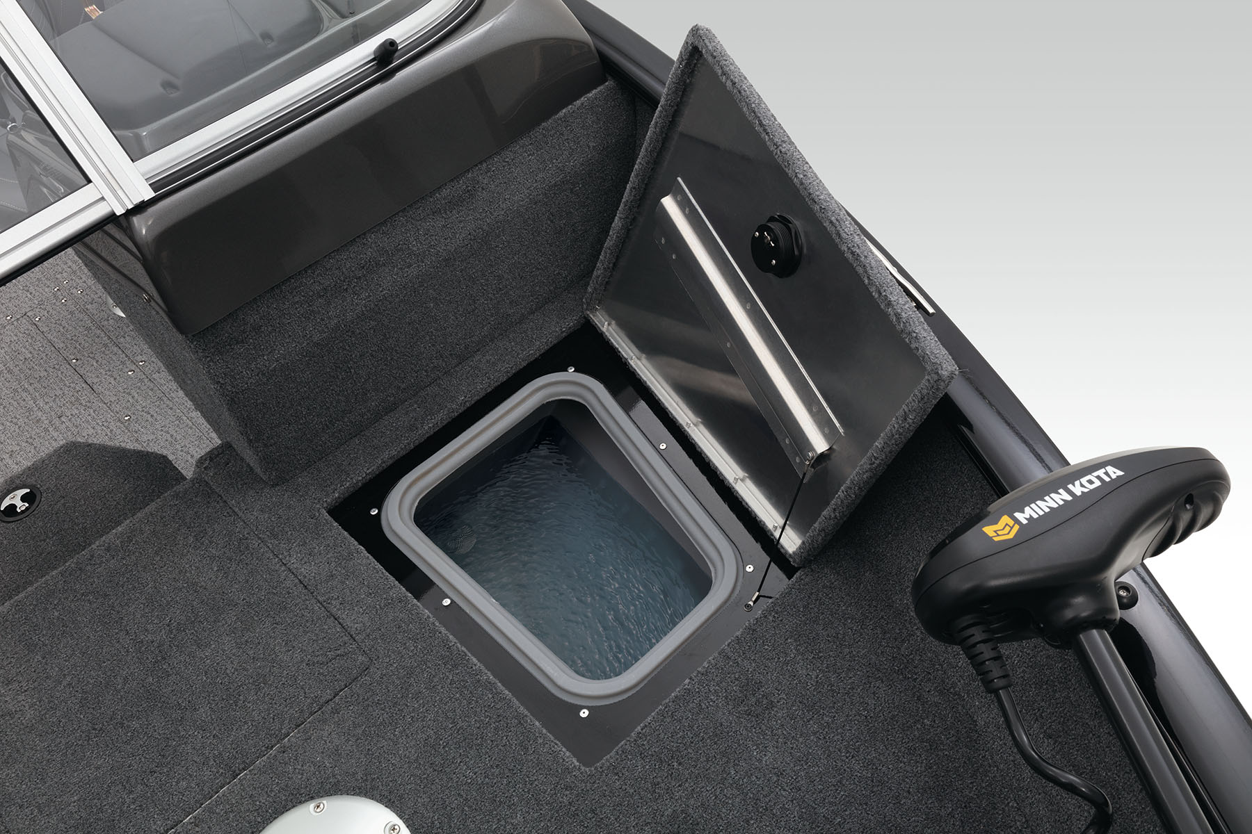 At 17’ 7” long and with a generous 8’ 1” beam, the TRACKER® PRO GUIDE™ V-175 WT (walk-thru) is a substantial and stable boat for tackling big-water angling. 48-gallons of livewell space keep bait and gamefish healthy, and massive storage throughout the boat stows all the gear you need for the most arduous of fishing expeditions.