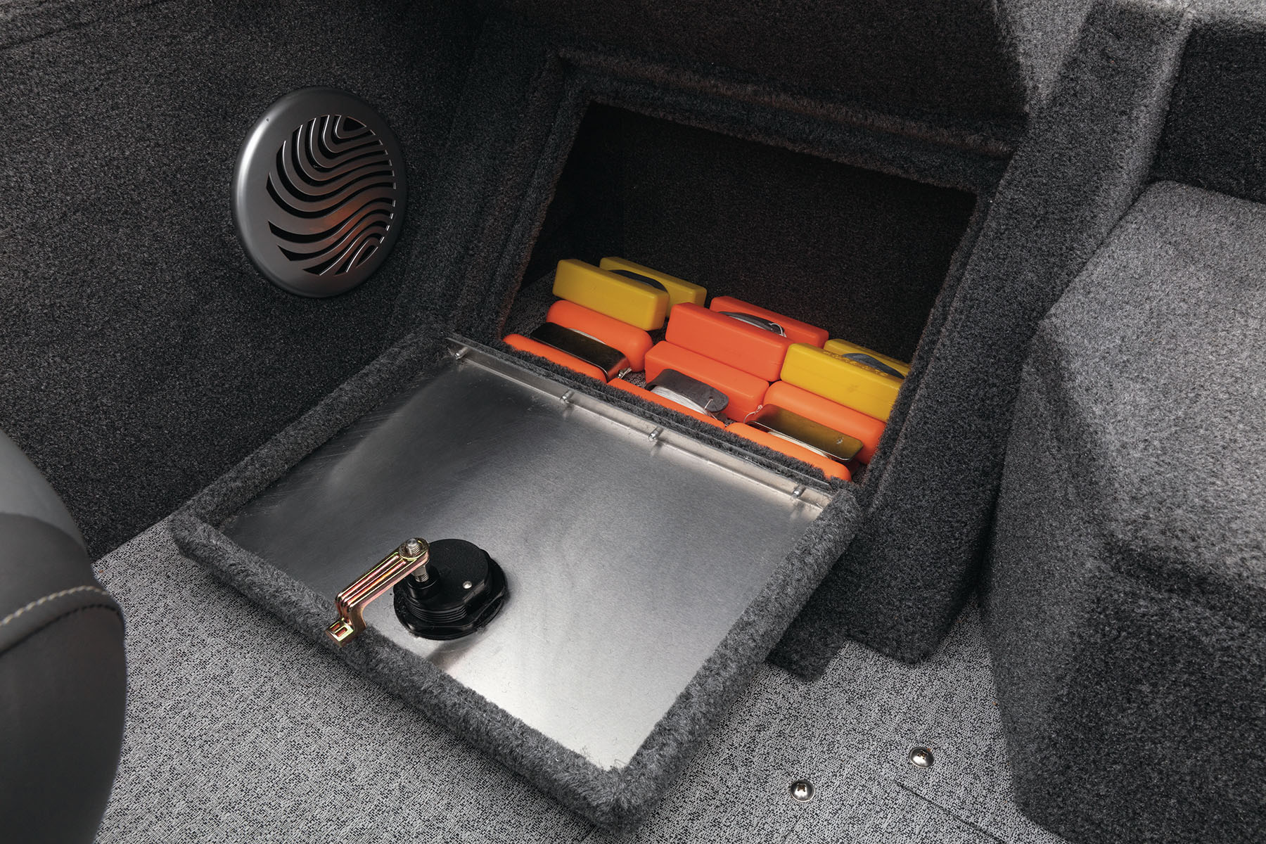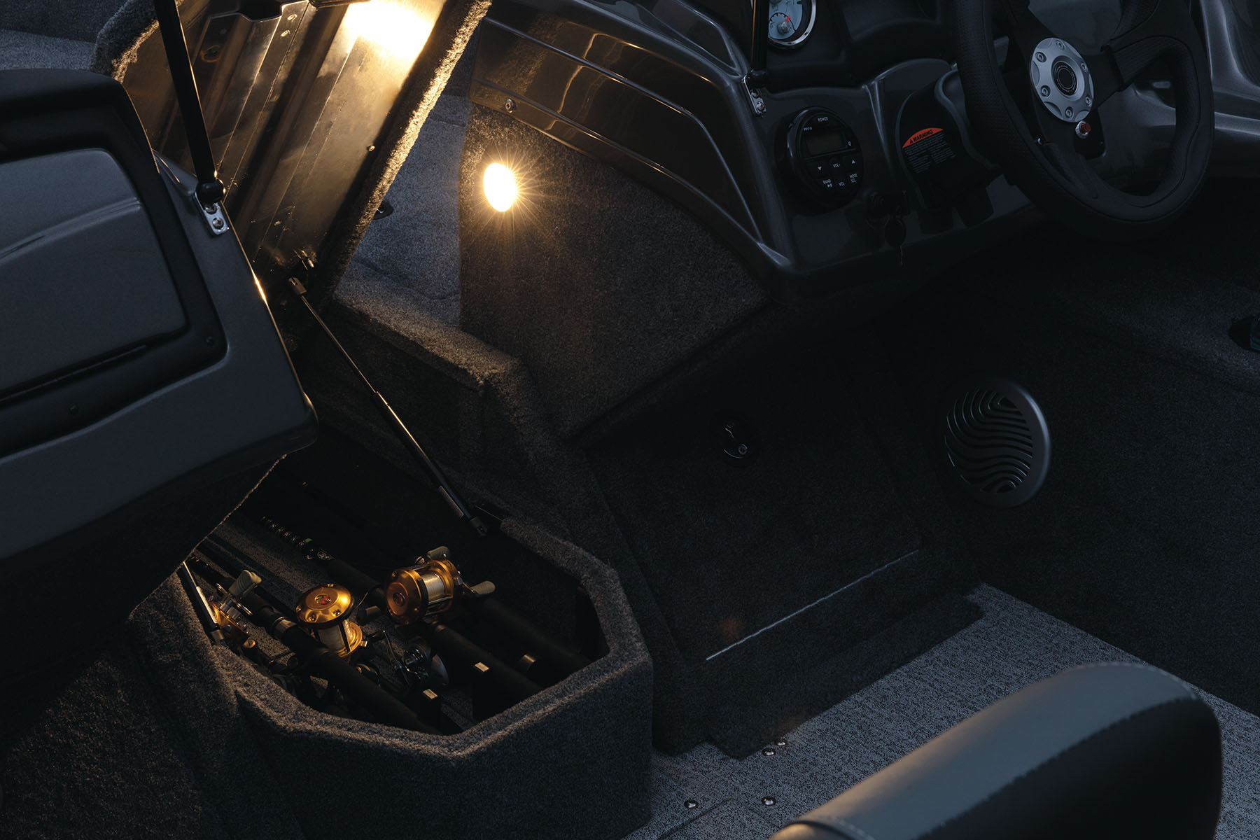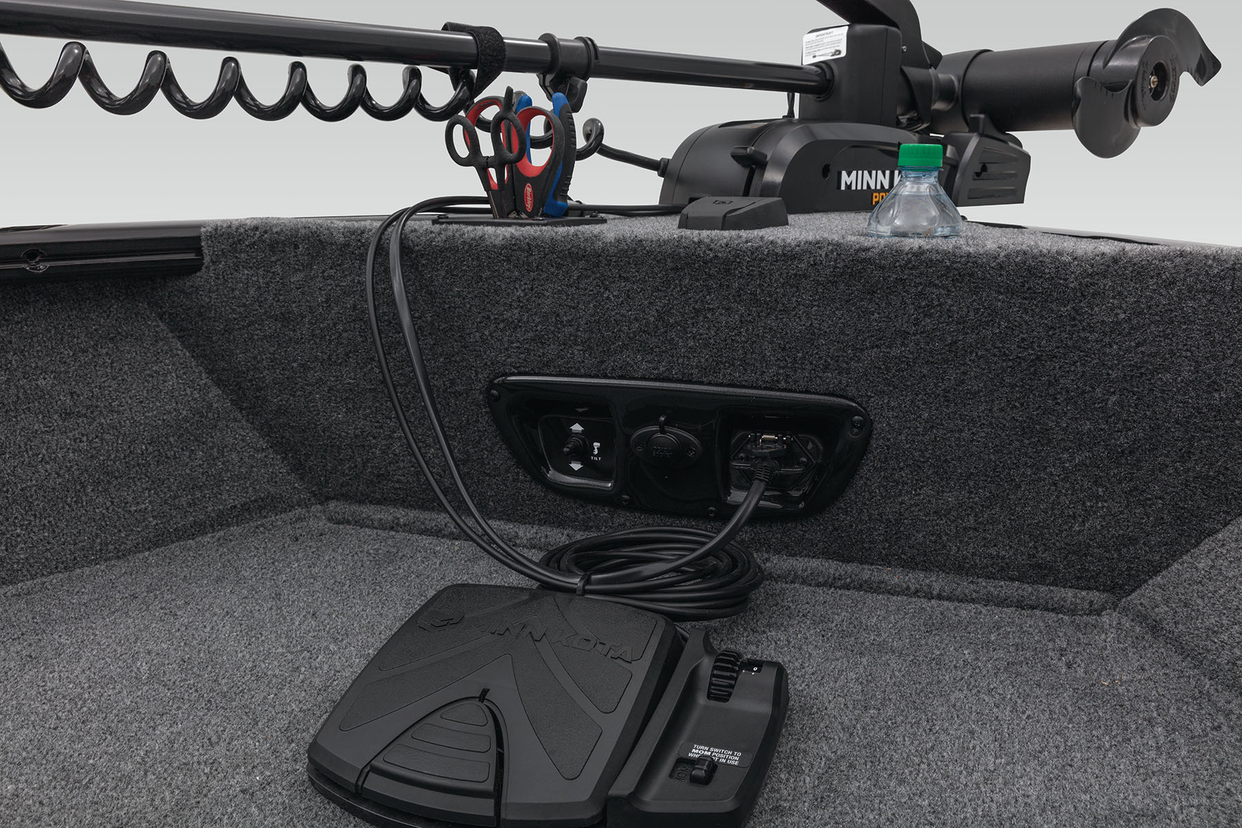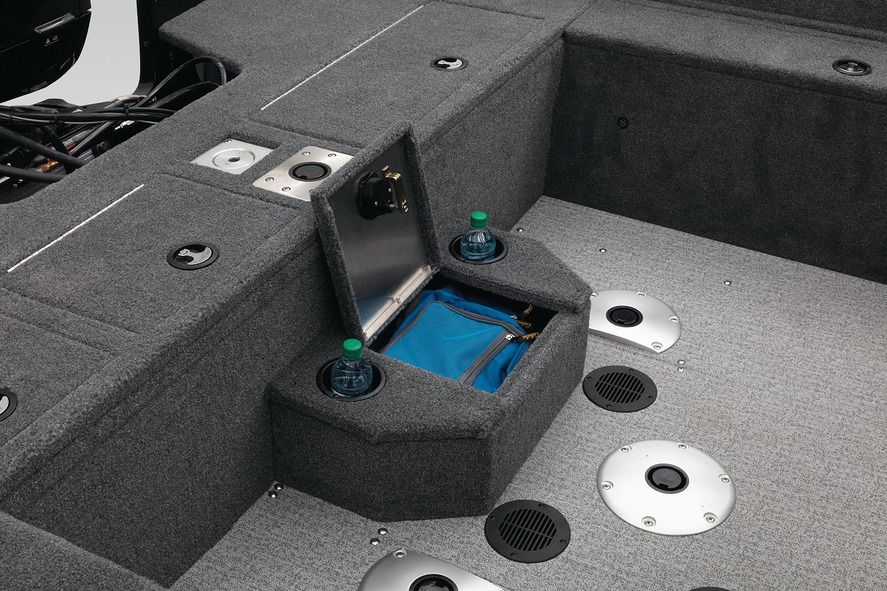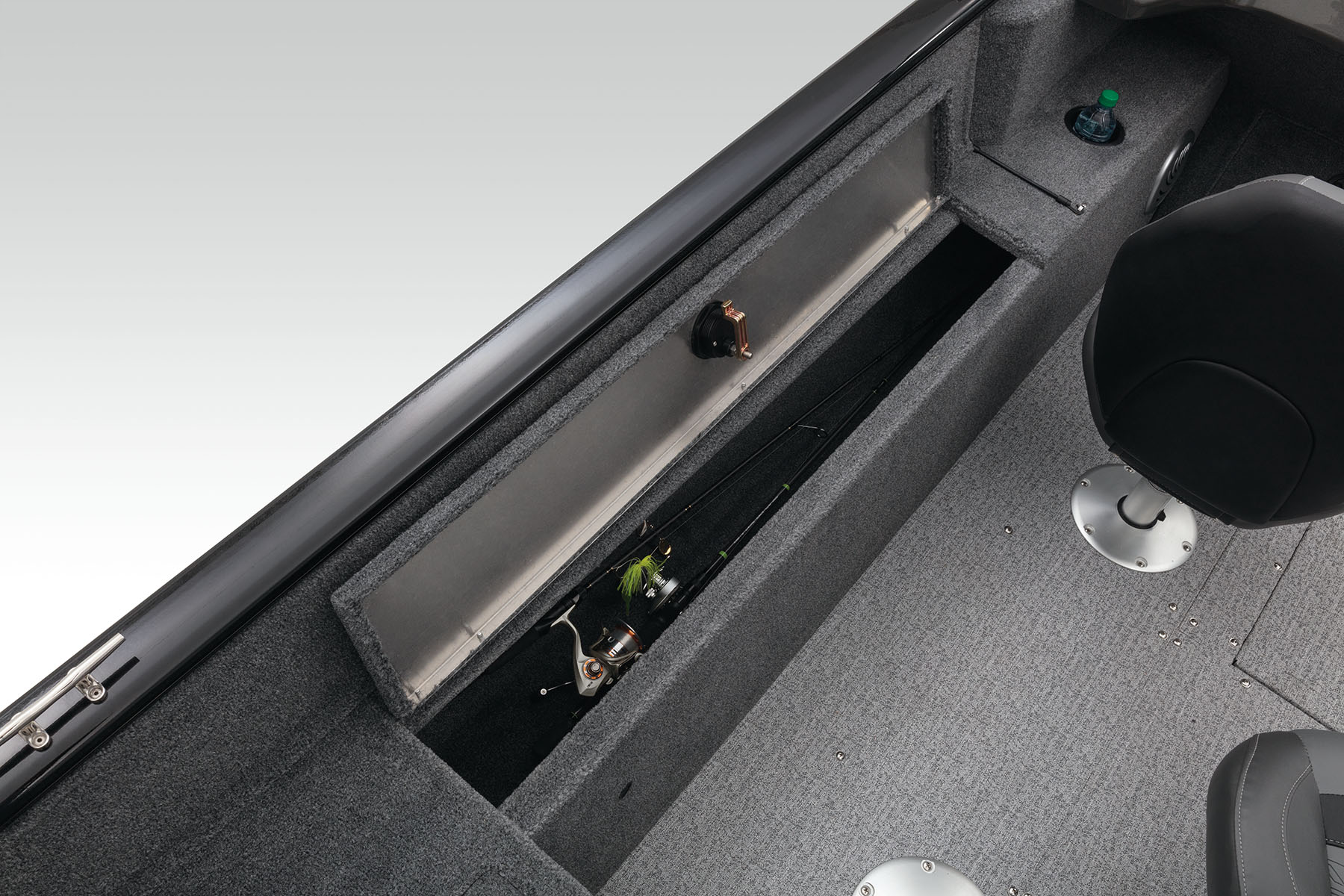 At 17’ 7” long and with a generous 8’ 1” beam, the TRACKER® PRO GUIDE™ V-175 WT (walk-thru) is a substantial and stable boat for tackling big-water angling. 48-gallons of livewell space keep bait and gamefish healthy, and massive storage throughout the boat stows all the gear you need for the most arduous of fishing expeditions.