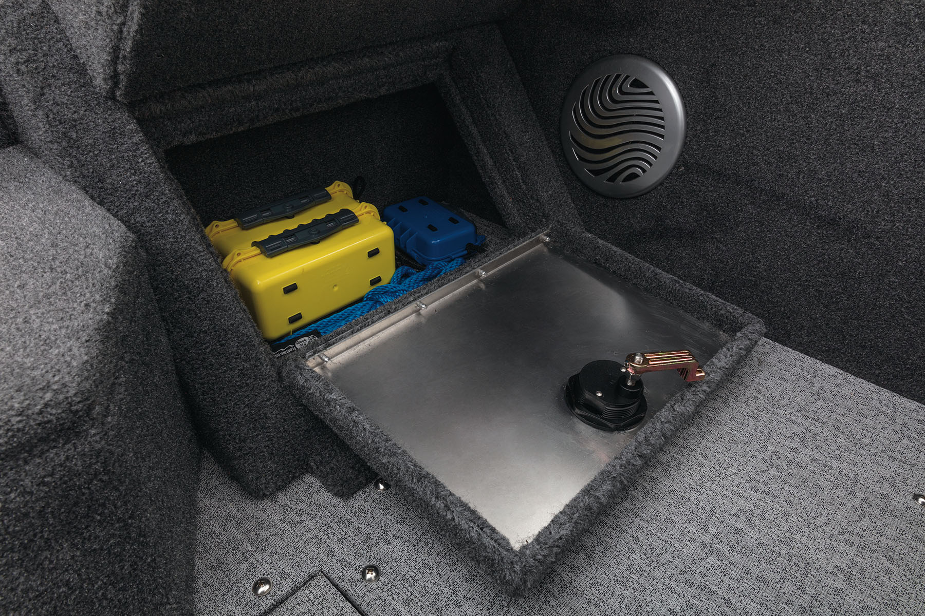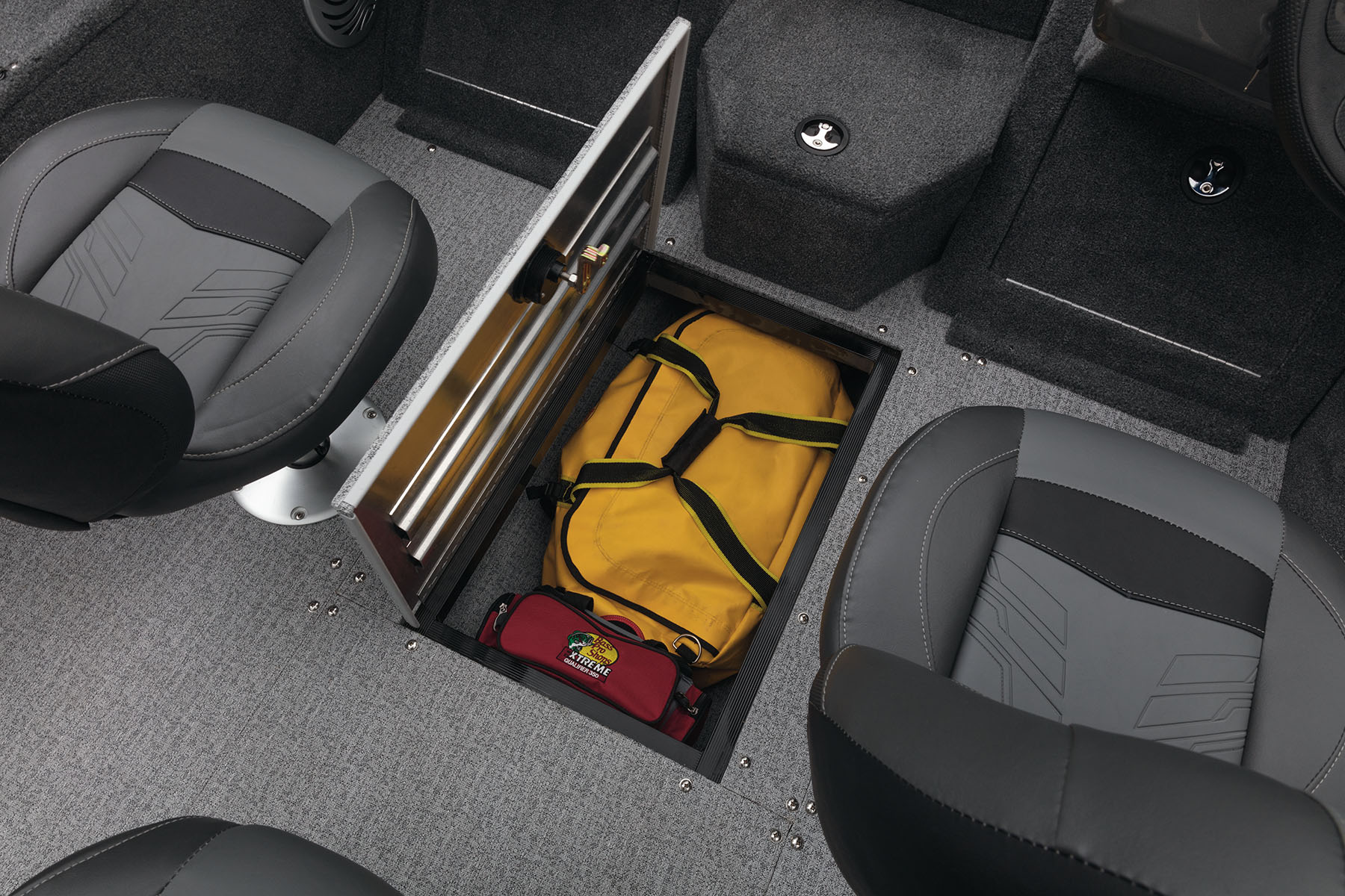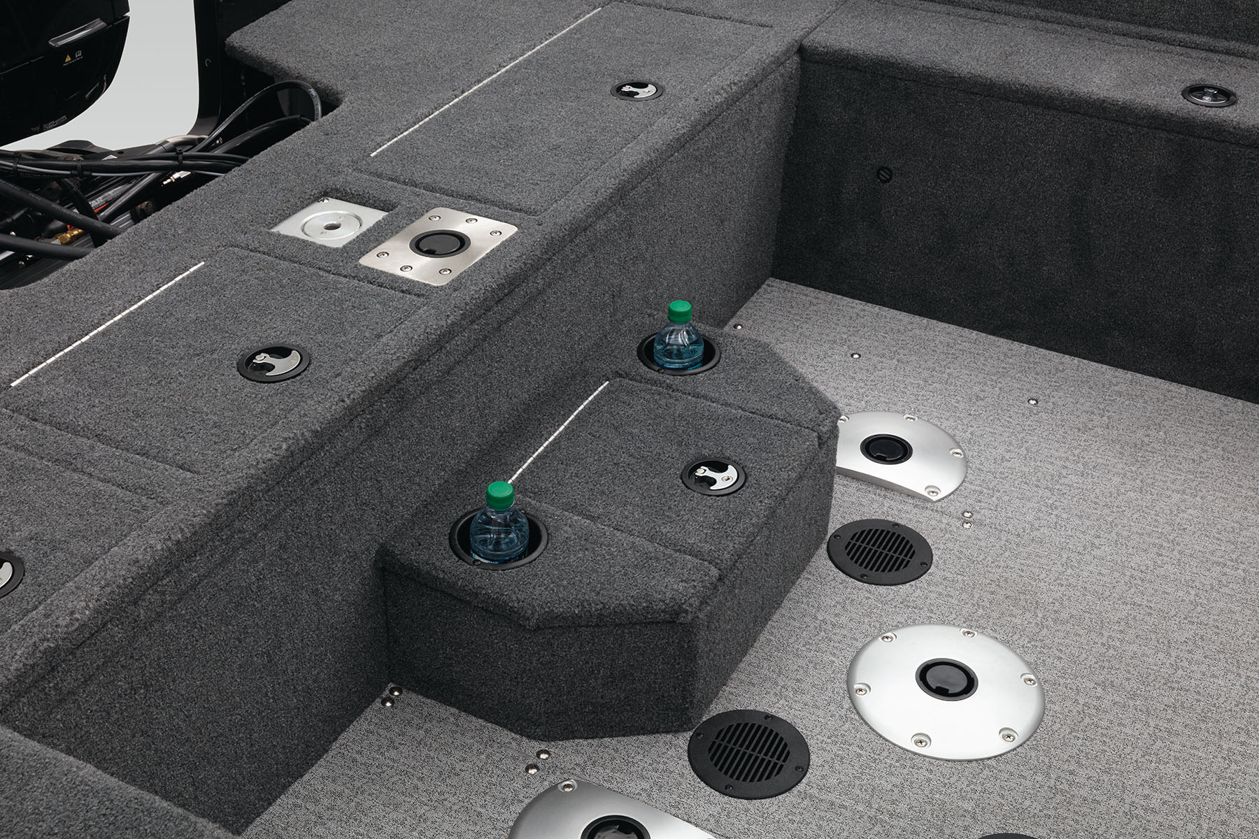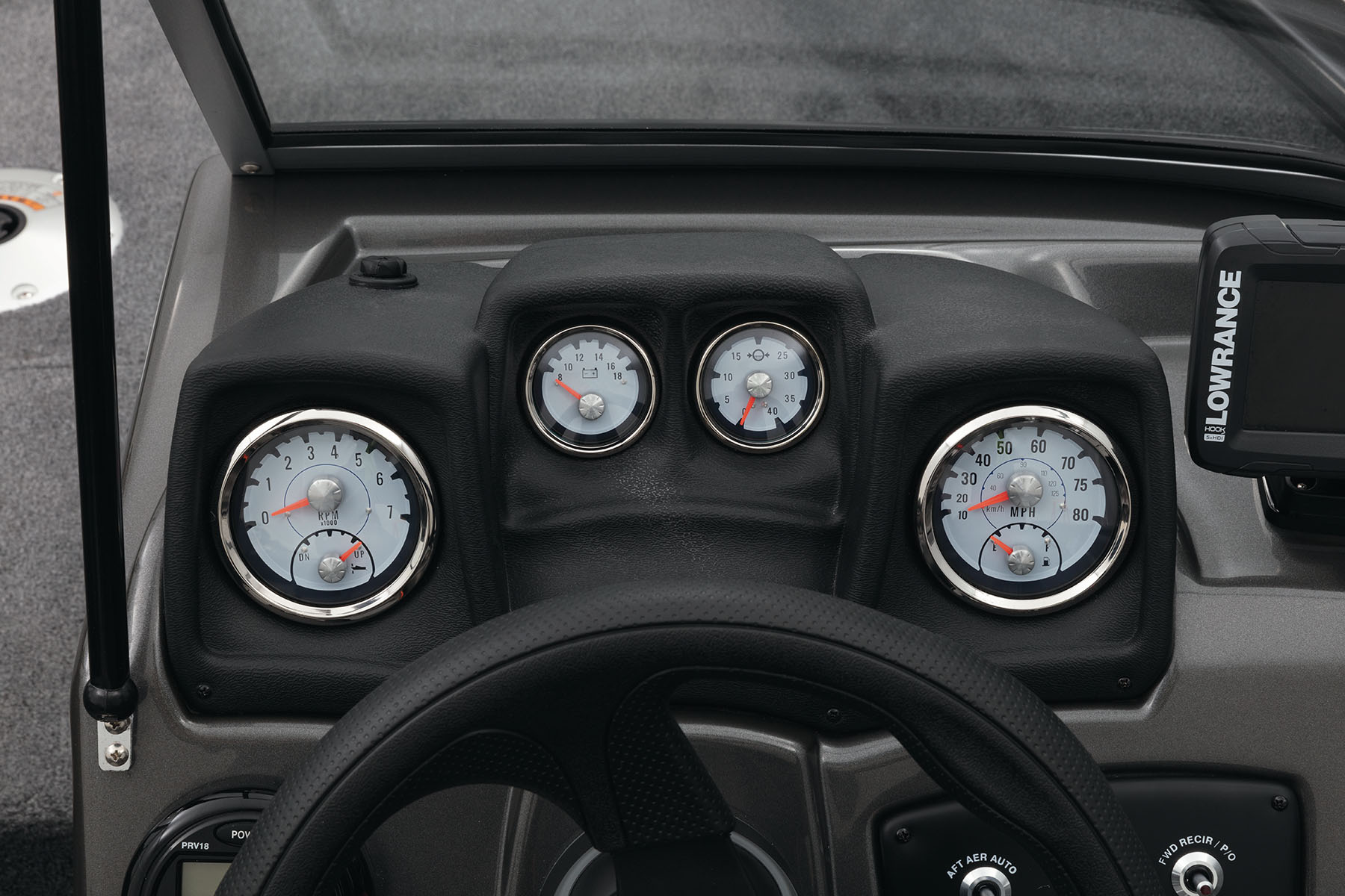 At 17’ 7” long and with a generous 8’ 1” beam, the TRACKER® PRO GUIDE™ V-175 WT (walk-thru) is a substantial and stable boat for tackling big-water angling. 48-gallons of livewell space keep bait and gamefish healthy, and massive storage throughout the boat stows all the gear you need for the most arduous of fishing expeditions.