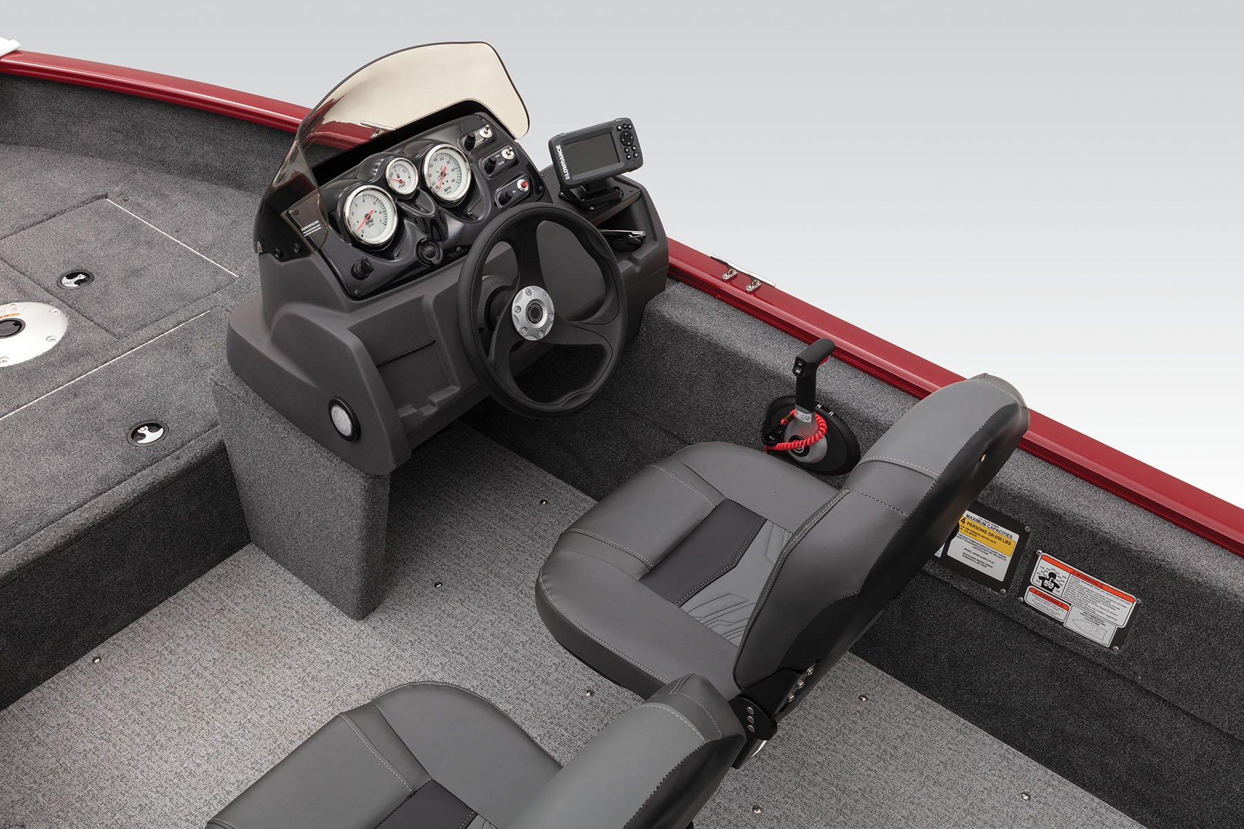The TRACKER® SUPER GUIDE™ V-16 SC (side console) offers an incredible value for a fully-featured, console-driven Deep V fishing boat. The all-welded hull is unitized by a full-length stringer and a box-beam transom, making the boat as durable as it is comfortable. And the interior is outfitted with two folding fishing chairs which can each move to any of five pedestal base locations.