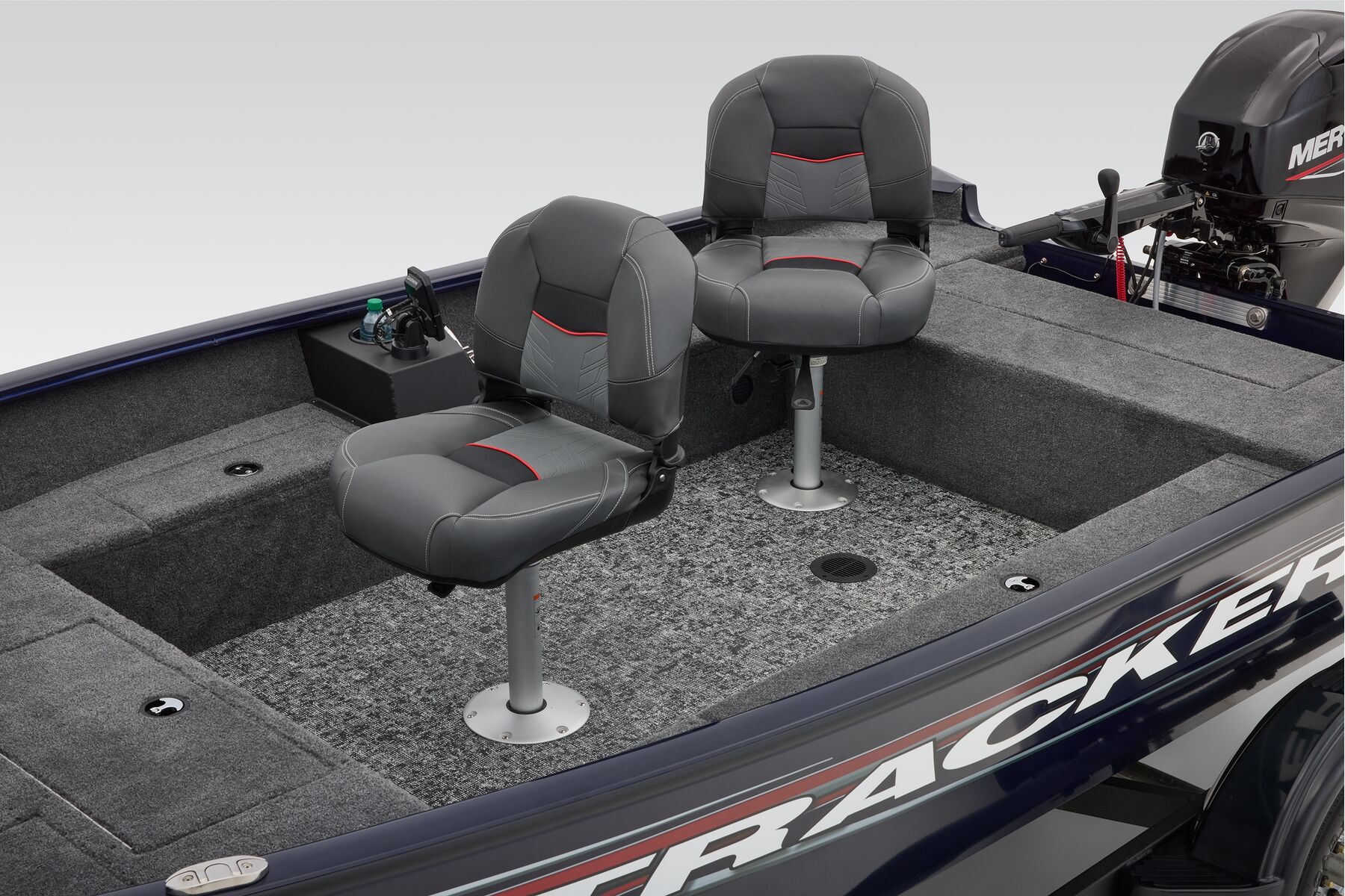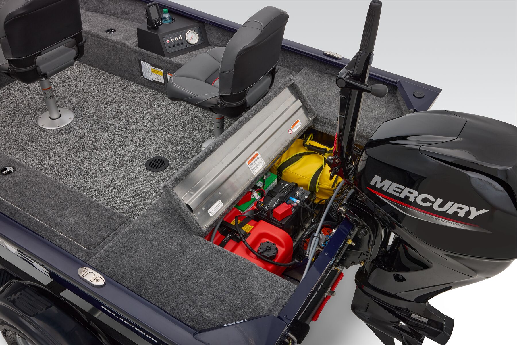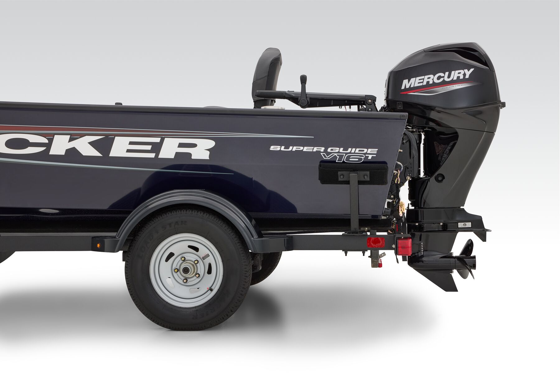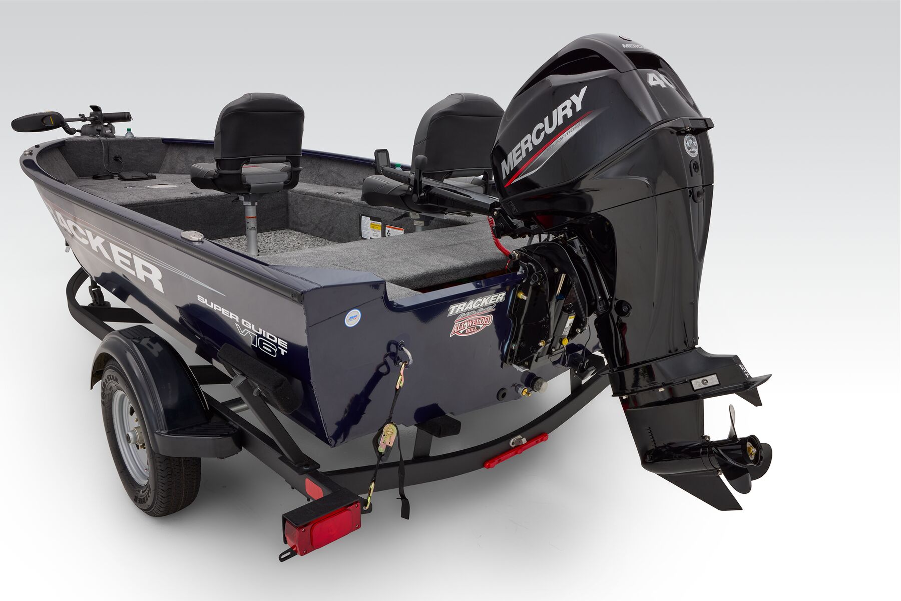 The newest TRACKER begins with a proven and highly acclaimed hull and adds tiller steering for more space, versatility, and simplicity. The Super Guide V-16 Tiller features the same sturdy, proven, and guaranteed build quality as our entire all-welded, rivet-free lineup. With increased cockpit space and a non-skid flooring, the new Super Guide V-16 Tiller is as wide open for possibilities as your day. It's equipped with spacious storages, multiple seating locations, an intuitive and well-equipped gauge pod, and of course, the same peace of mind that runs throughout our lineup. With the tiller in hand, you command smooth, reliable Mercury® power and a boat that's the result of decades of passionately pursuing excellence.