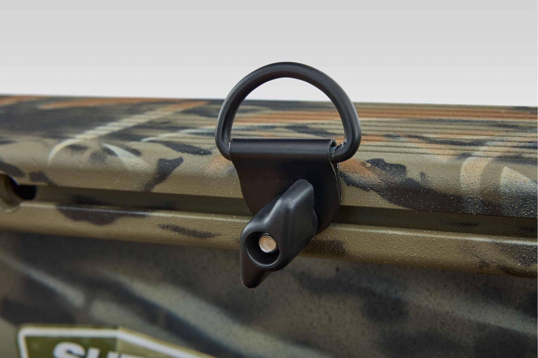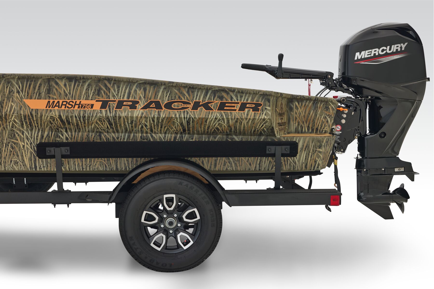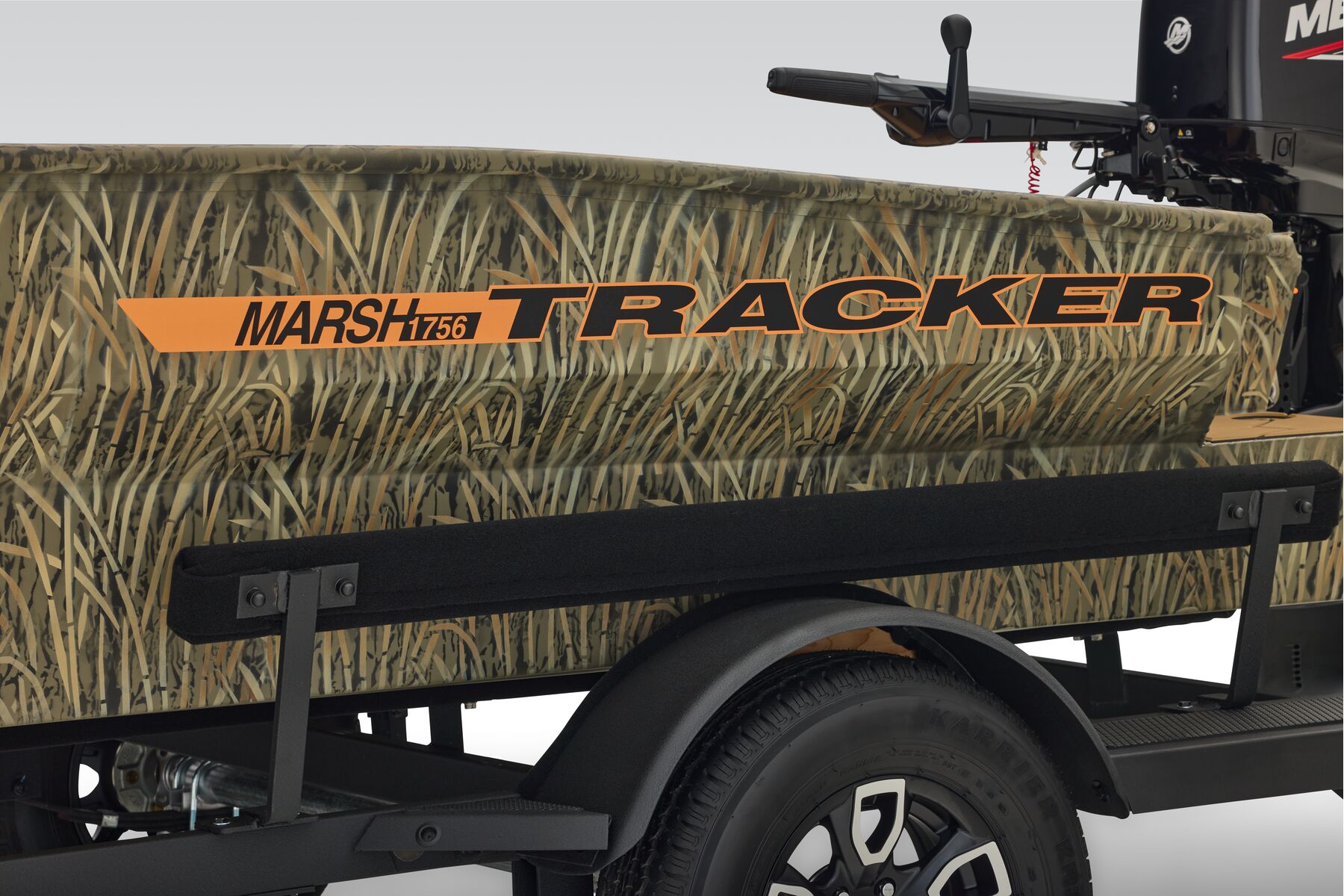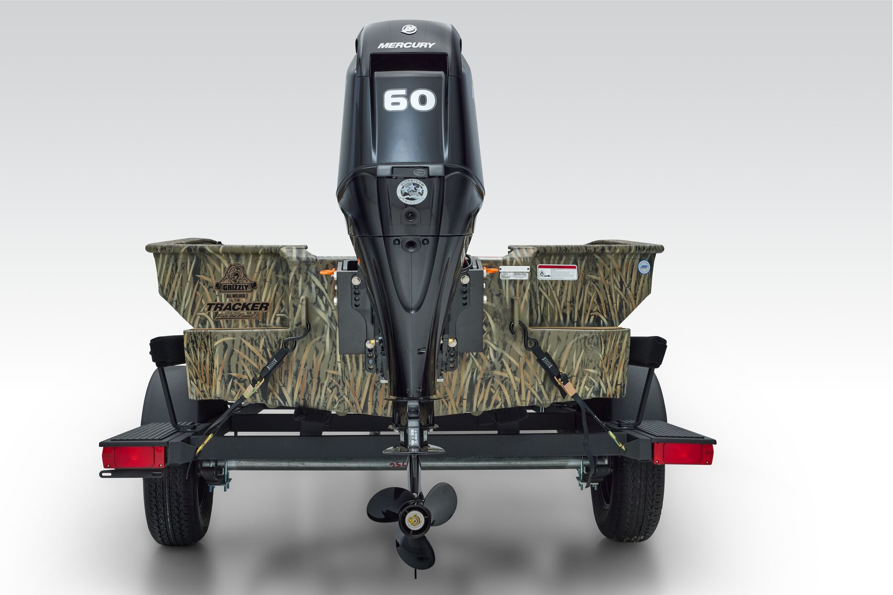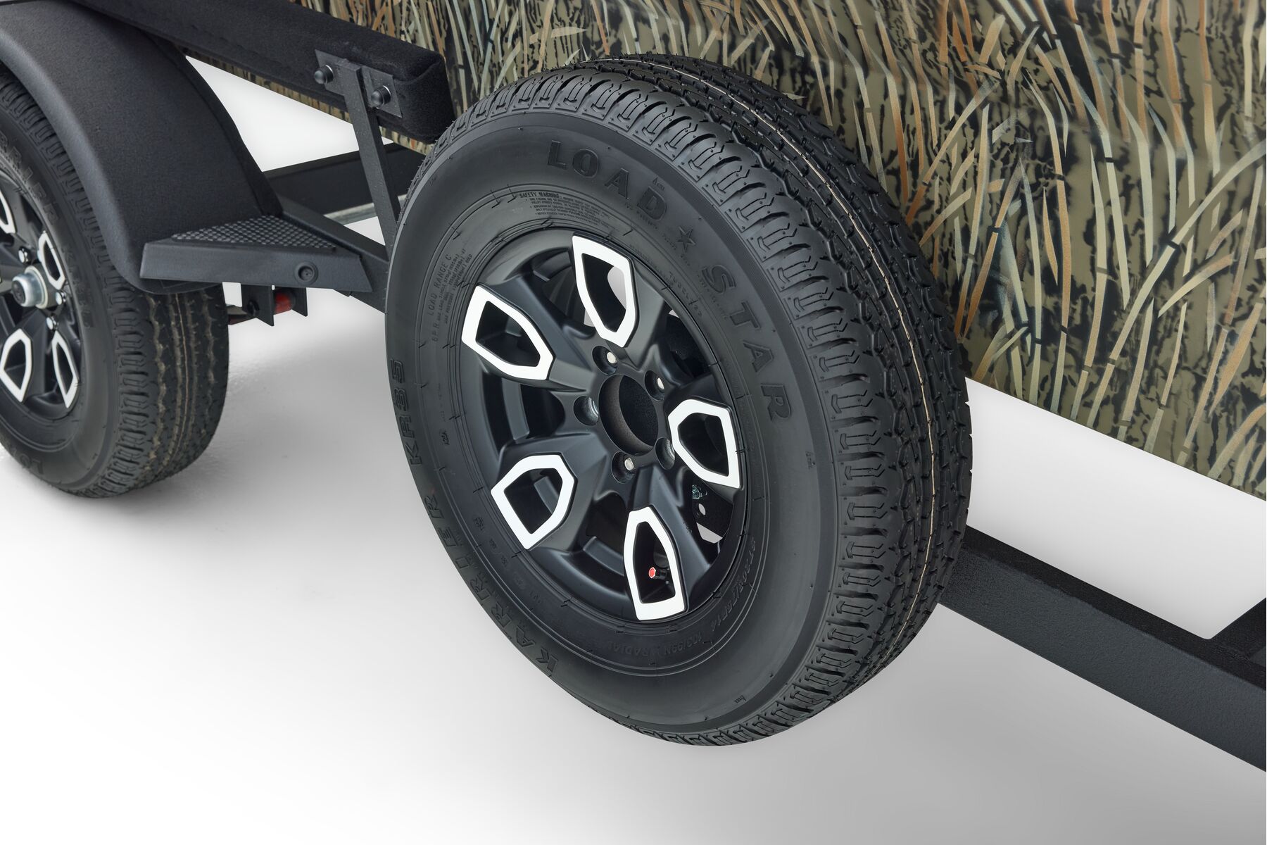 Designed for versatility, it features a spacious front deck ideal for duck hunting, multiple lockable storage compartments, and dry storage in the aft port seat pod. The interior includes Sure Tread™ non-skid flooring for safety and longevity, along with strategically placed tie-down points for gear security. The exclusive VERSATRACK® accessory channel allows customization. Constructed from 100% aluminum with a wood-free transom system, it provides a smooth, dry ride thanks to its 7° deadrise and icebreaker keel. Additional features include integrated spud pole tubes, rear transom steps, and a welded foam-filled interior for strength. Equipped with practical electrical components and a powder-coated trailer, this boat is perfect for die hard waterfowl hunters, and outdoor enthusiasts seeking durability and style in striking Forest Green or TrueTimber® camo patterns.