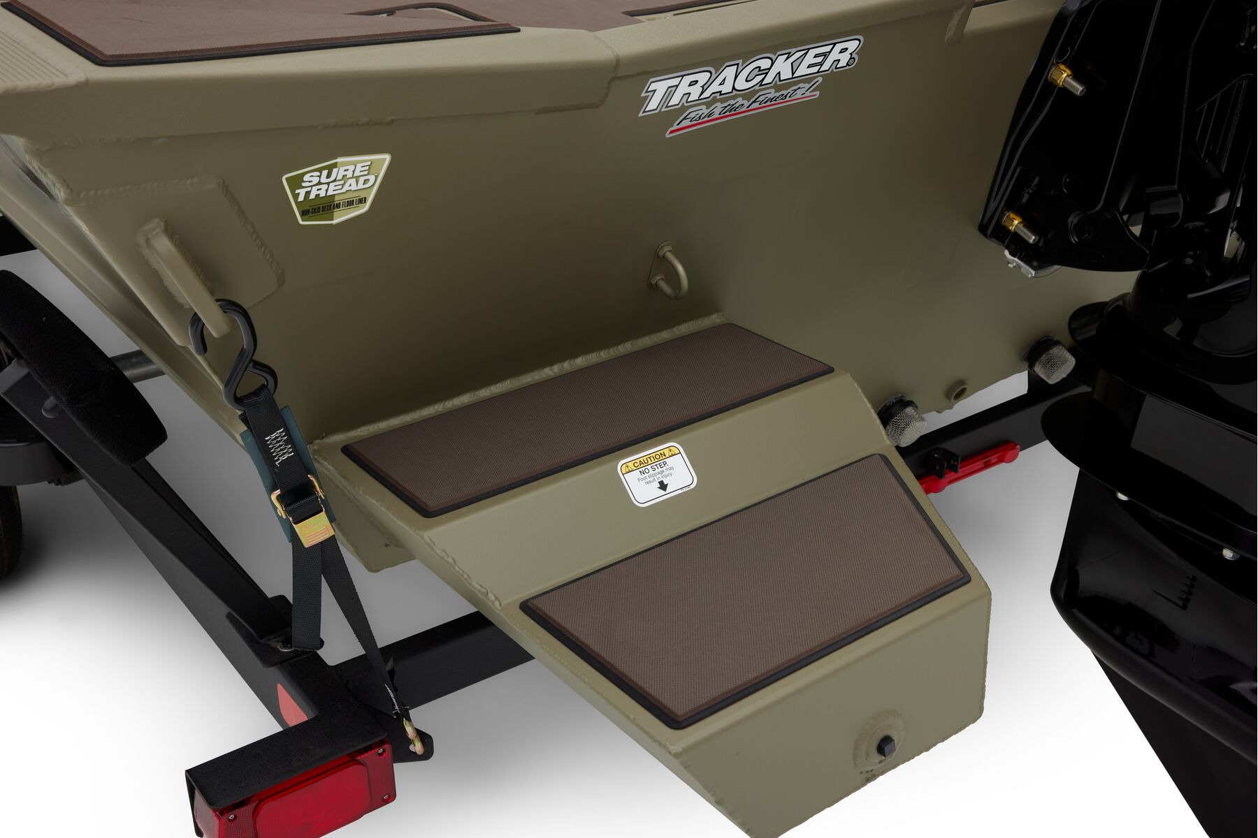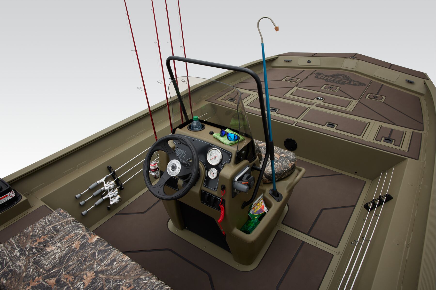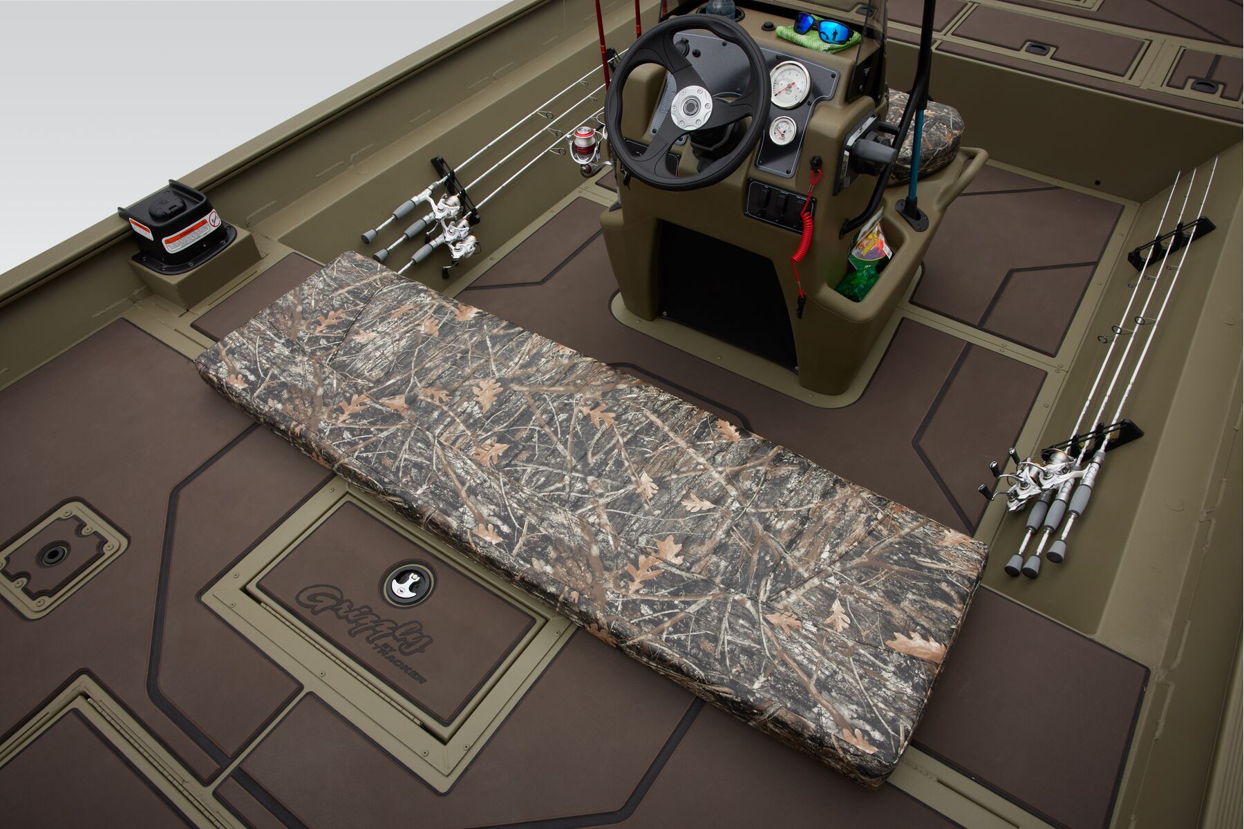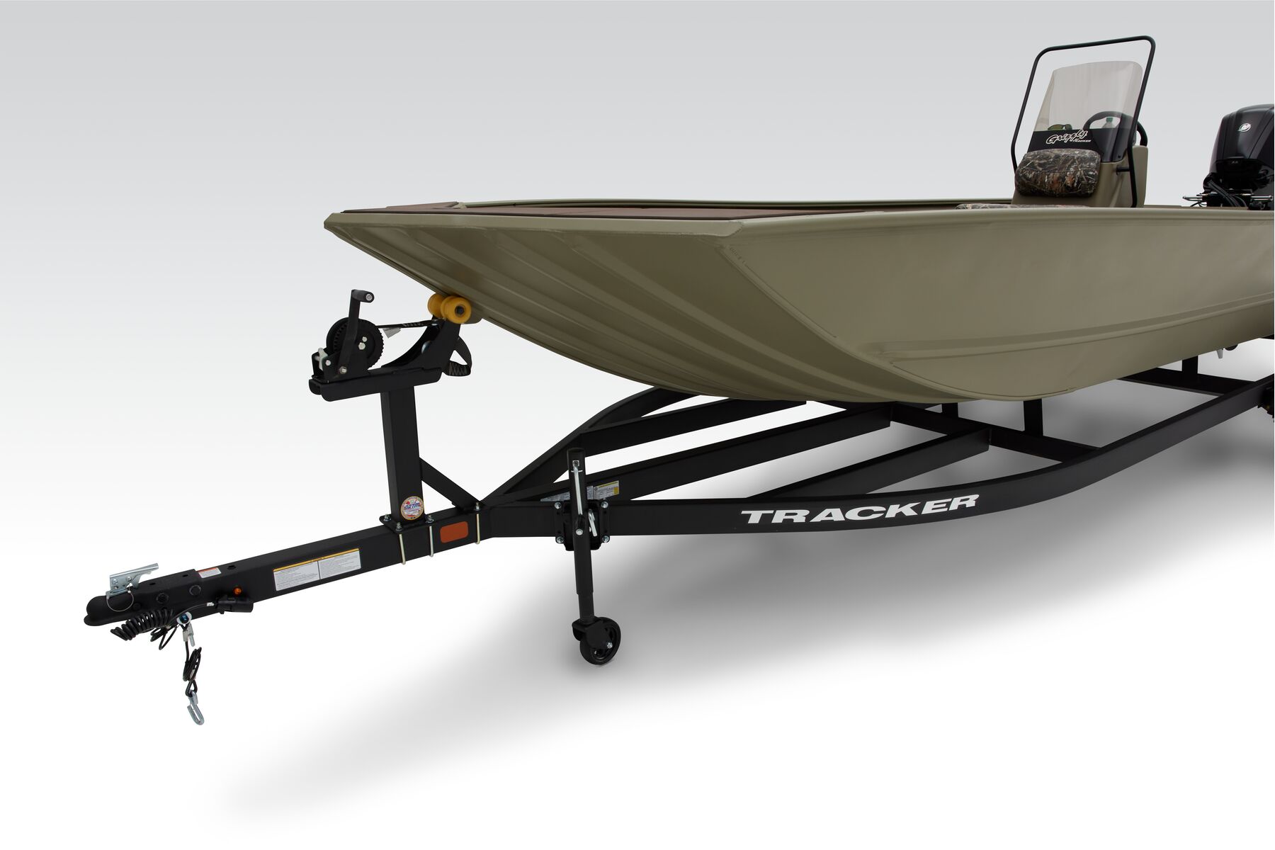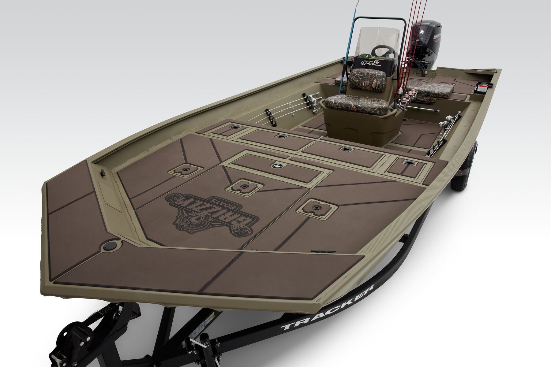 Unleash the power of the TRACKER® GRIZZLY® 2072 CC, a formidable all-welded aluminum jon boat designed to tackle a multitude of tasks, whether it's inland or inshore fishing, hunting, or utility work. Boasting a massive build, this boat is ready to conquer any challenge you throw its way. The innovative center-console design not only offers 360° fishability but also provides the driver with enhanced visibility when navigating through narrow and shallow waters, ensuring a smooth and controlled ride. With the capability to be powered by up to 150 HP, the GRIZZLY 2072 CC delivers unmatched power and range for your adventures on the water. Constructed with 100% aluminum, featuring a .100 hull and .190 floor, this boat guarantees exceptional durability and longevity. The hull, stringer, transom, and decks are meticulously all-welded to create a rock-solid, unitized structure that can withstand the harshest conditions with ease. Backed by the reliable TRACKER PROMISE, offering the best factory warranty in aluminum boats, the GRIZZLY 2072 CC provides you with peace of mind and confidence in your investment. For those looking to personalize their vessel, optional TrueTimber camo patterns and a MarineMat kit are available, allowing you to tailor your boat to suit your preferences and style. Experience unparalleled versatility, power, and durability with the TRACKER GRIZZLY 2072 CC, your ultimate companion for a wide range of water activities.