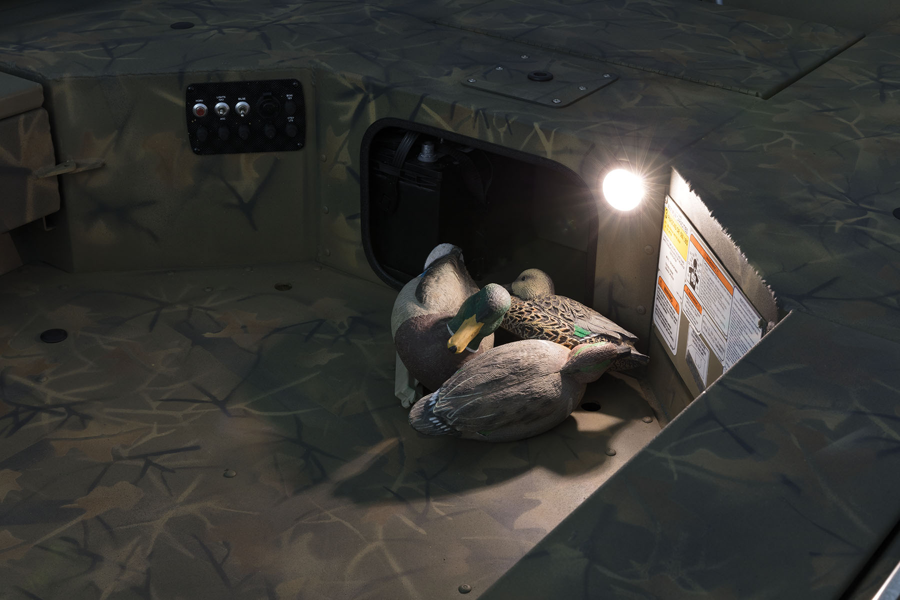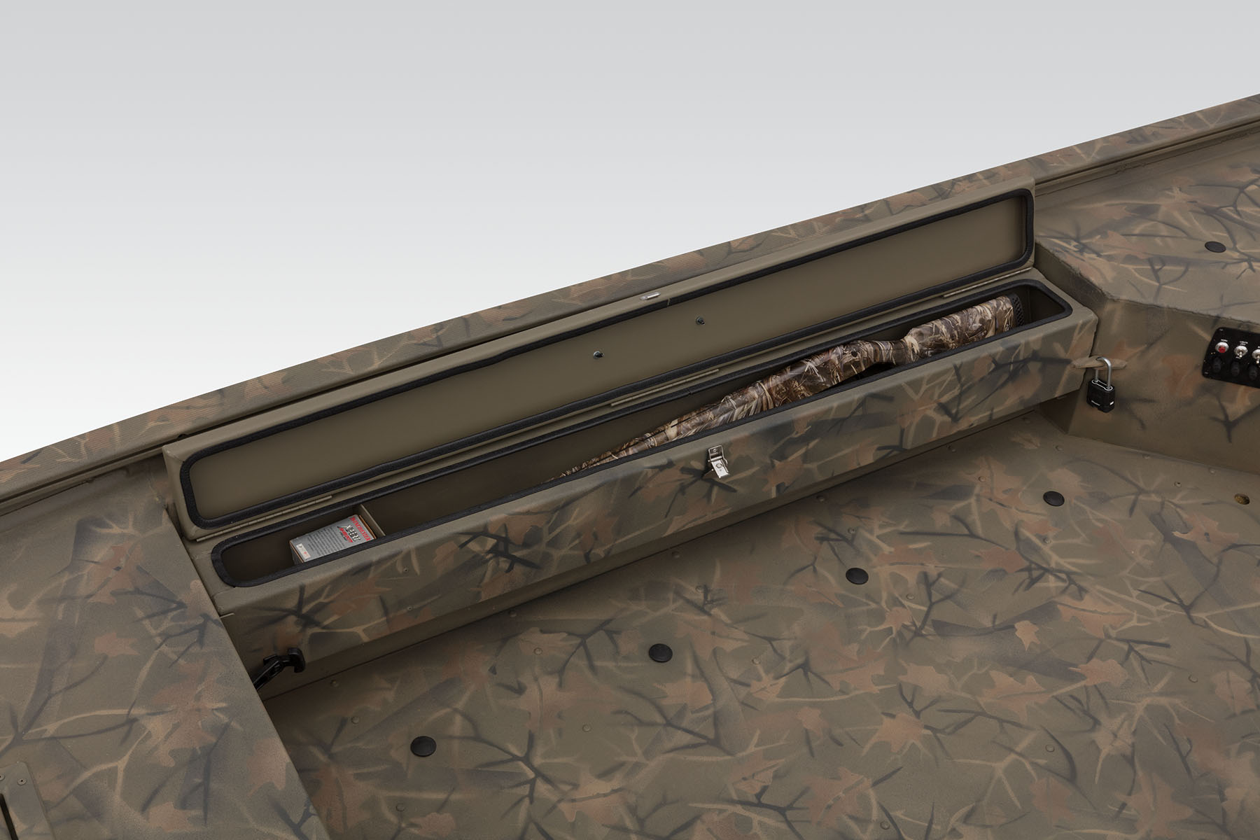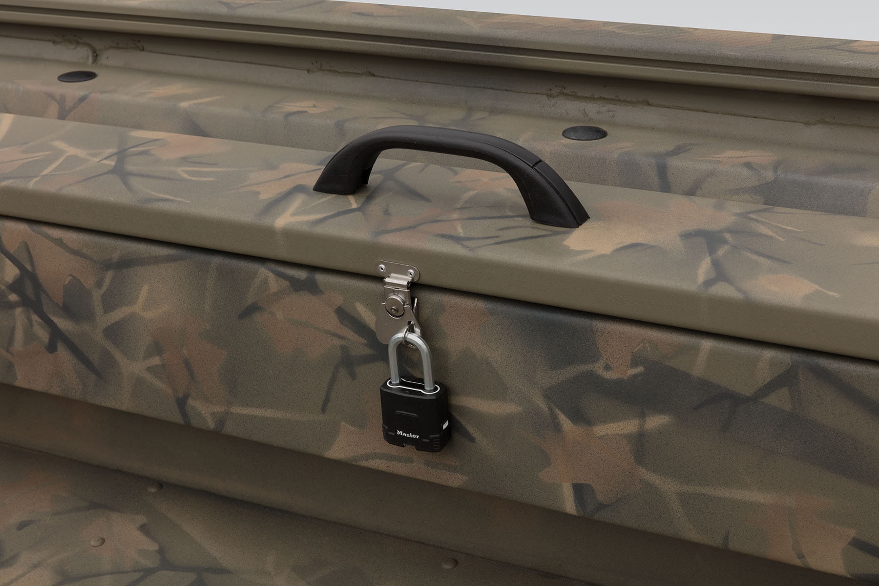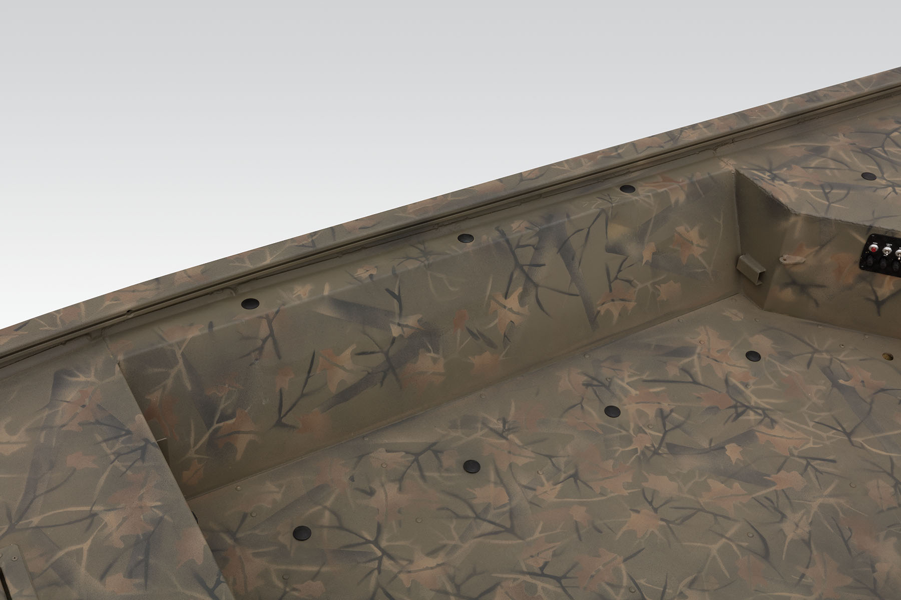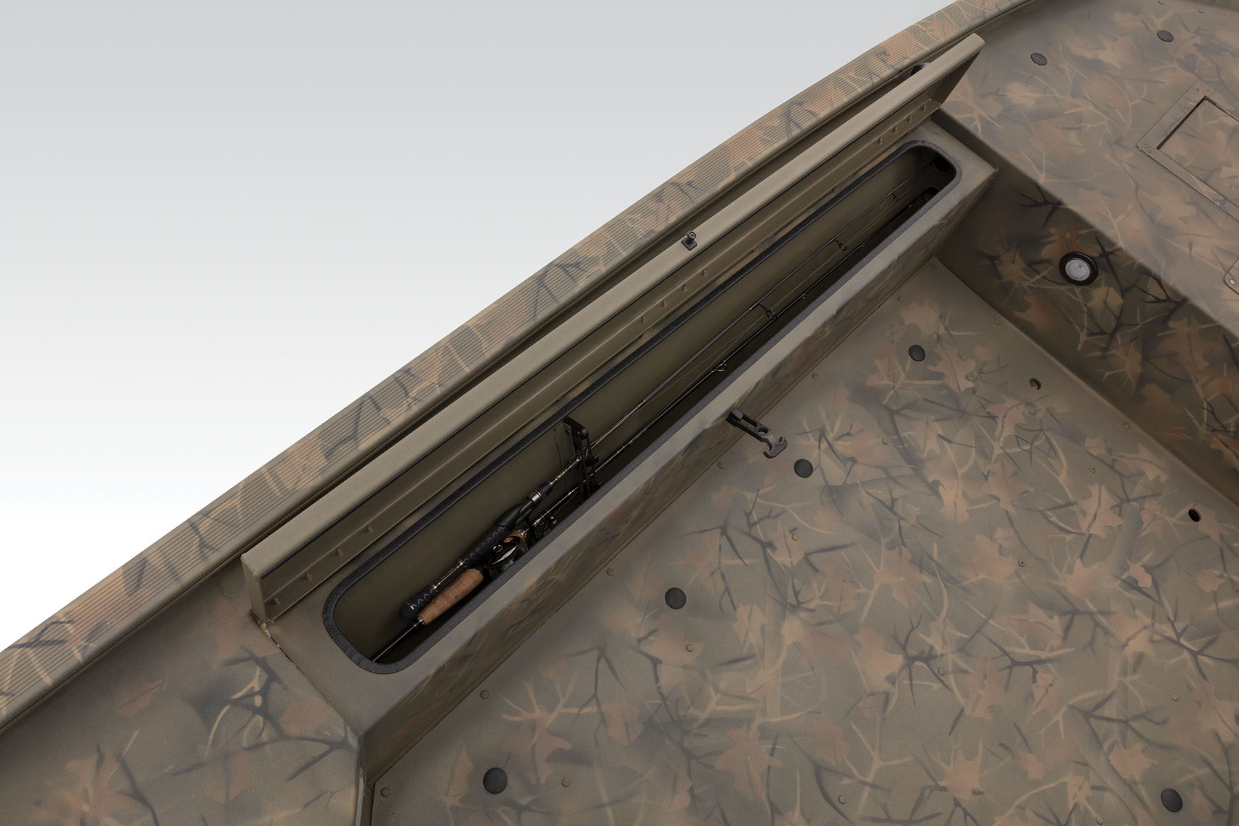 100% aluminum construction with a .100 hull and .190 floor ensures long-lasting durability, and the hull, stringer, transom and decks are all-welded for a rock-solid, unitized structure that can withstand rough fishing and hard work. Because of this, we back it with the TRACKER PROMISE—the best factory warranty in aluminum boats. In addition to the standard Forest Green powdercoat, this model is available in optional Grassland or Woodland camo patterns.