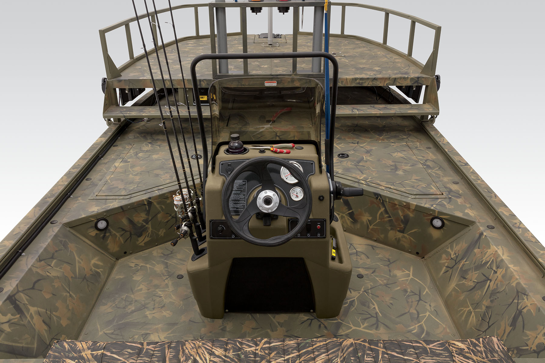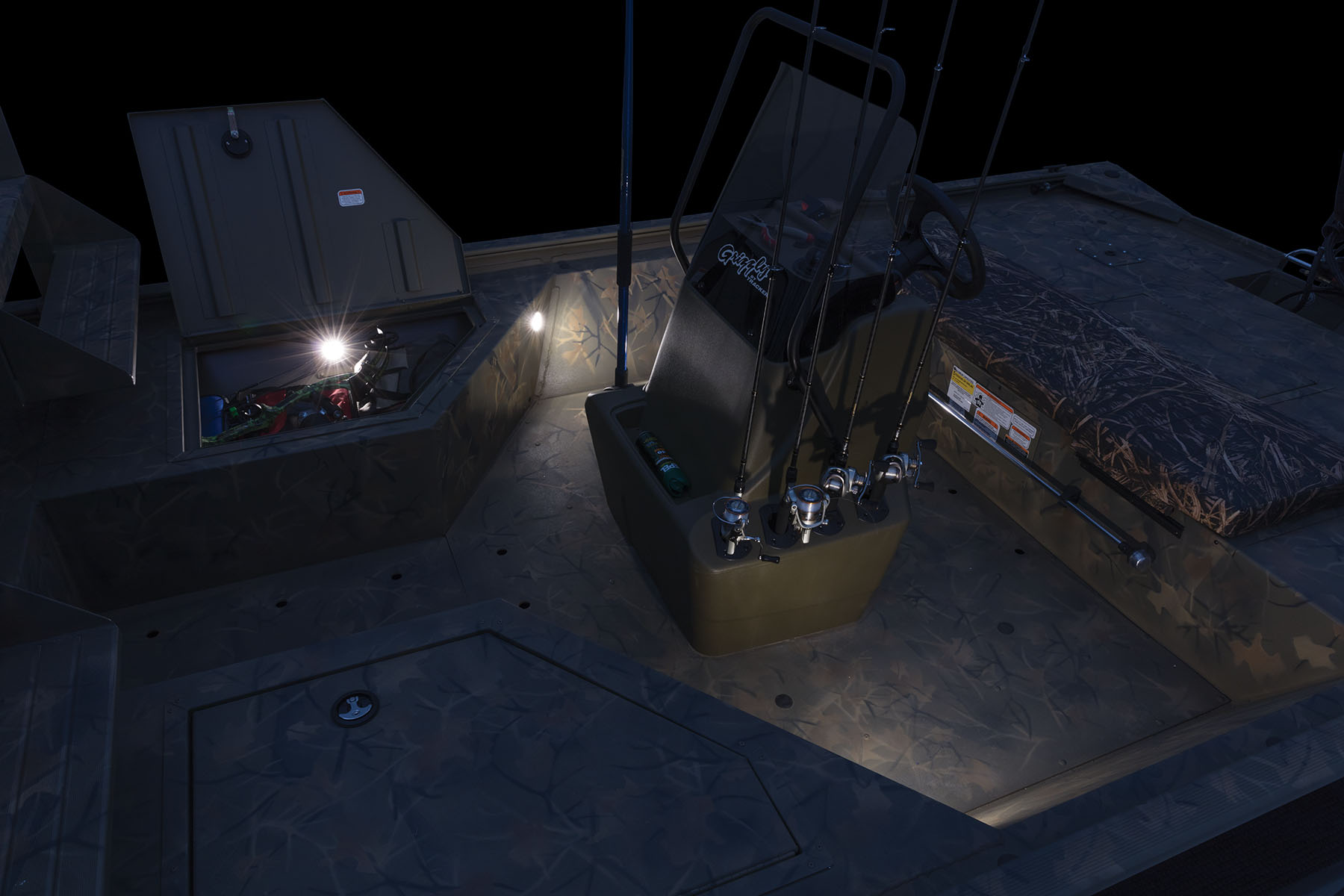 A rugged beast of a boat built for bowfishing, the TRACKER® GRIZZLY® 2072 CC Sportsman is the apex predator for hunting fish on the river, bayou or lake. The removable, elevated deck gets you up high for more accurate targeting with a bow and less deflection for your arrow—and 8 super-bright LEDs illuminate your quarry with 40,000 lumens. And with the deck removed, it makes an excellent craft for any type of fishing, even in bigger lakes and bays.