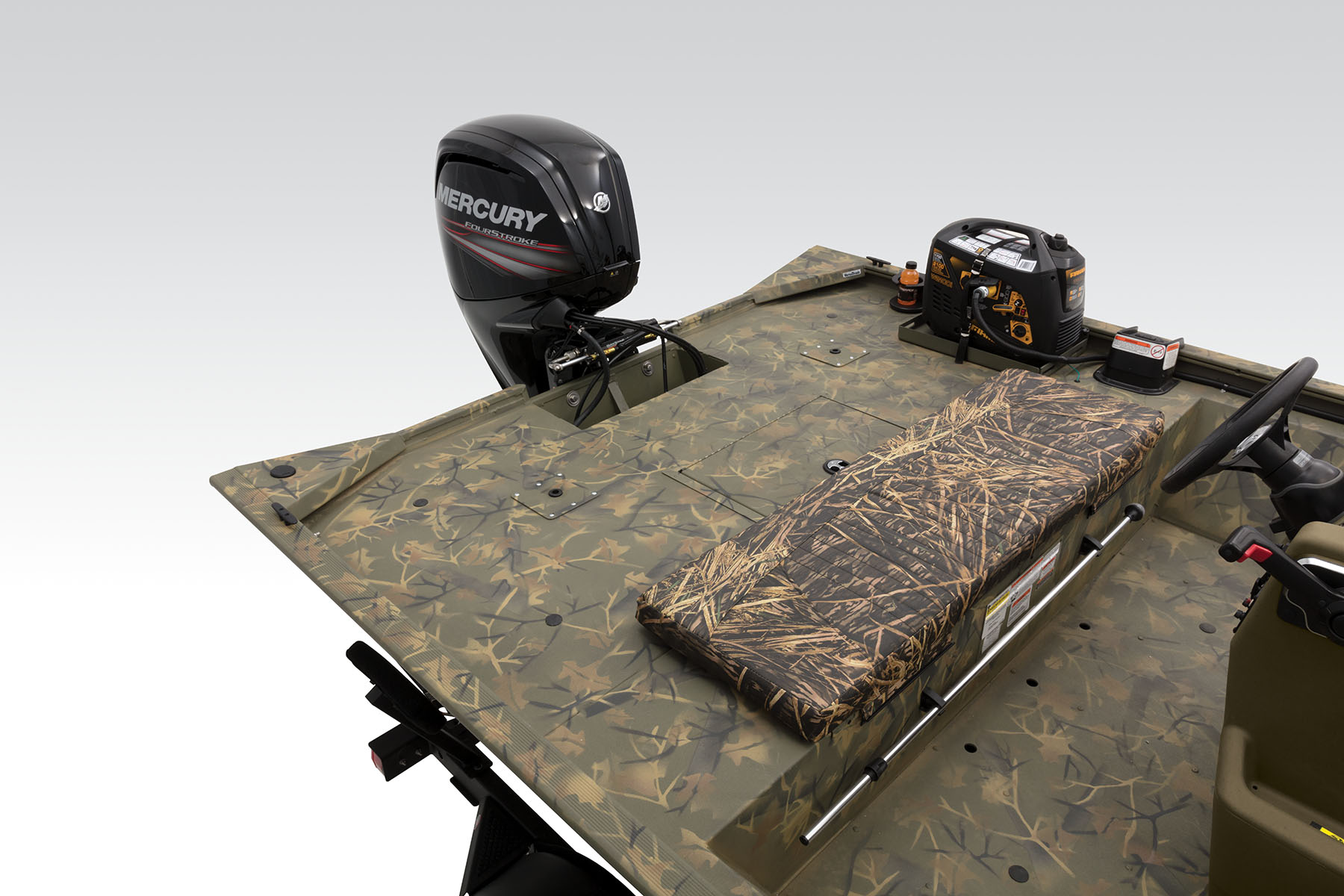 100% aluminum construction with a .100 hull and .190 floor guarantees durability, and the hull, stringer, transom and decks are all-welded to for a rock-solid, unitized structure that can withstand rough fishing and hard work. Because of this, we back it with the TRACKER PROMISE—the best factory warranty in aluminum boats.